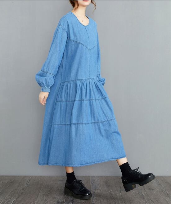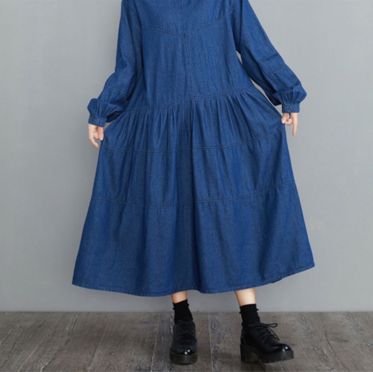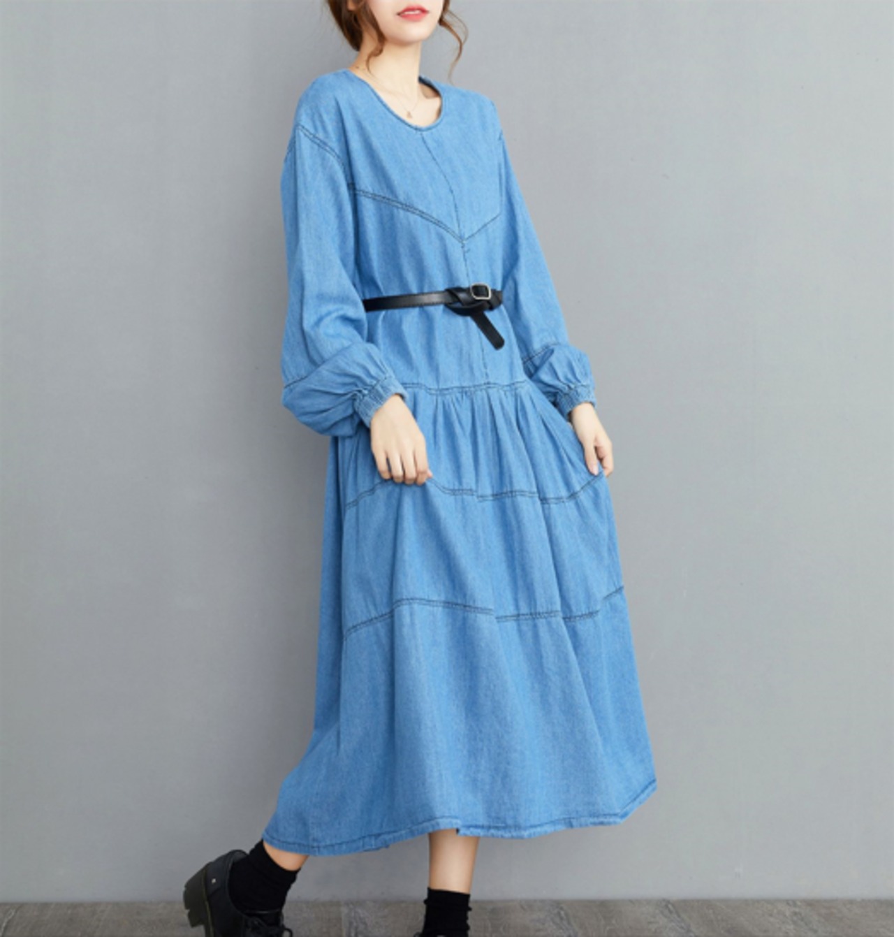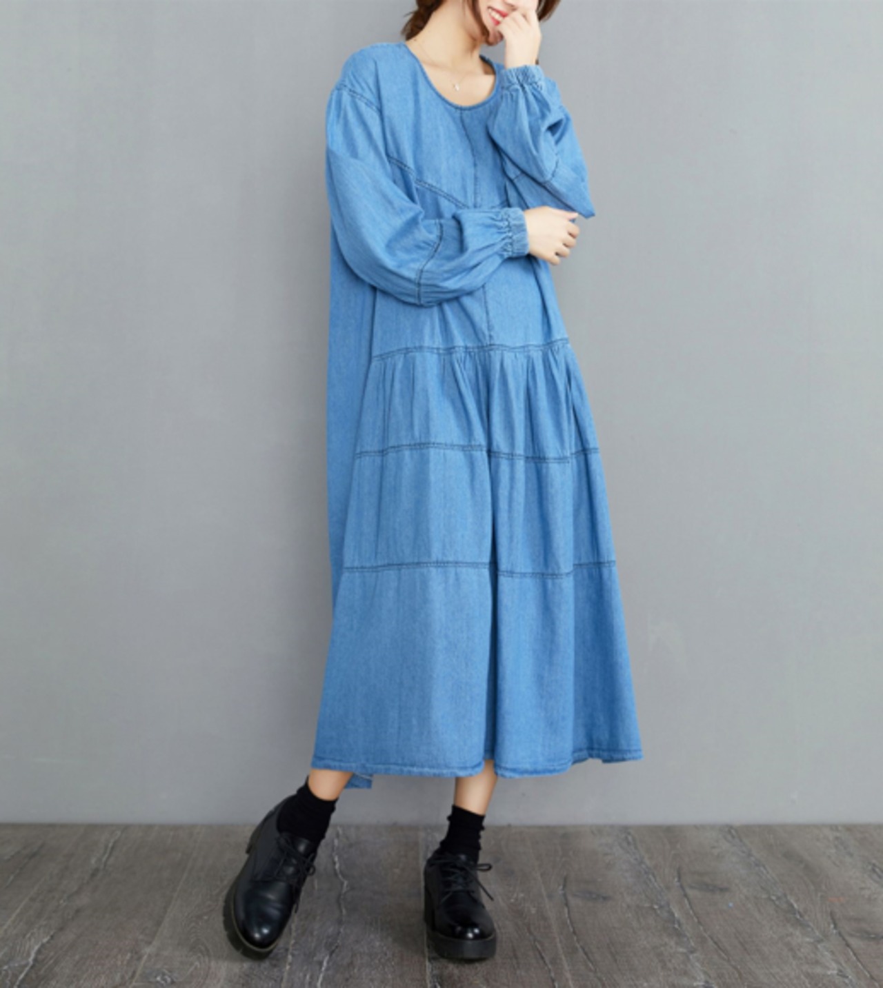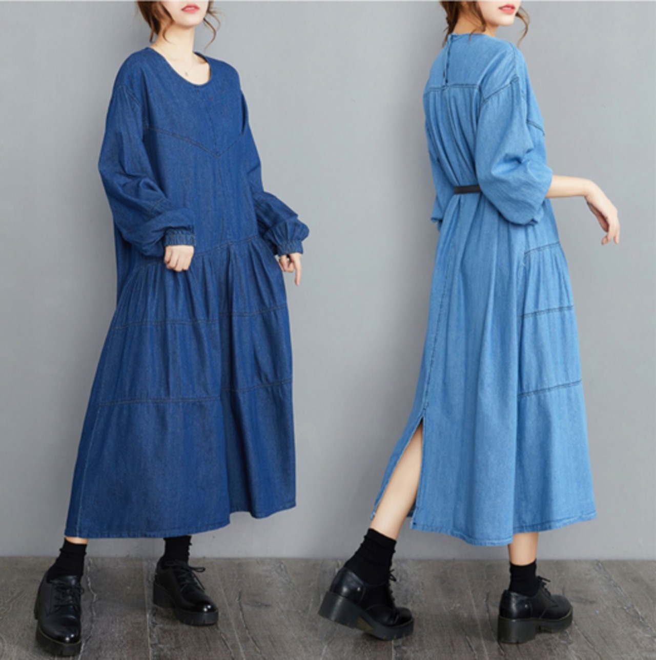 スカート ワンピース チュニック ロングスカート フレアスカート デニムワンピース ワンピドレス ロング 袖なし 長袖 ボリューム袖 ラウンドネック ワイド Aライン デニム ブルーデニム かわいい シンプル カジュアル 大人女子 こなれ感 ガーリー ルーズ 無地 春 秋 20代 レディース 女性用 デート お出かけ 女子会 休日 リゾート 旅行 普段使い 楽ちん 体系カバー L XL ゆったり ネイビー ライトブルー