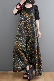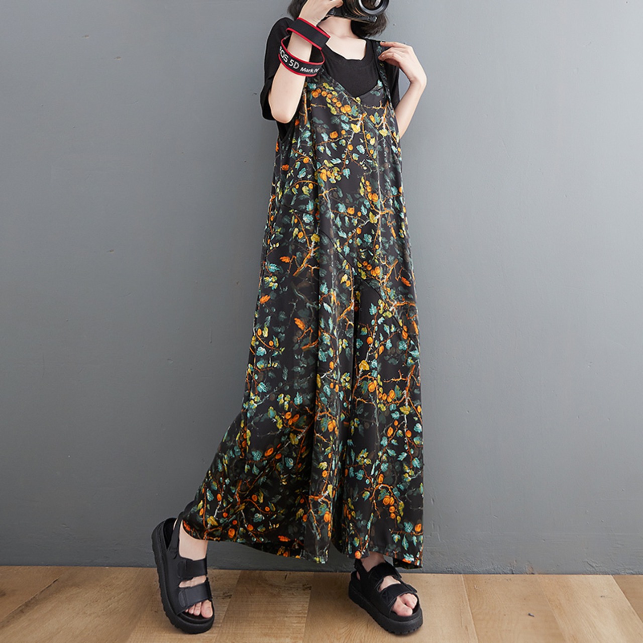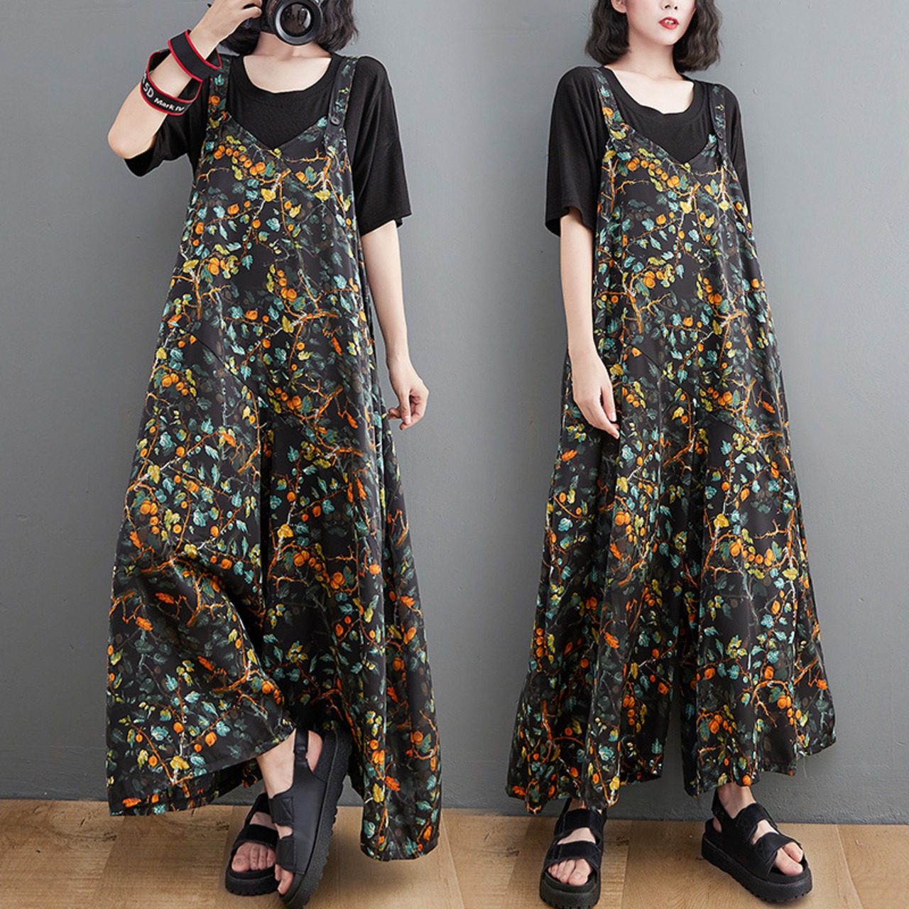 個性的 ボトムス オールインワン ズボン キャミソール ワイドパンツ ロング丈 袖なし 襟なし フレア ワイド ポケット 綿 ポリエステル かわいい カジュアル おしゃれ レトロ こなれ感 ラフ ルーズ 柄 ボタニカル 夏 秋 20代 レディース 女性用 学生 デート お出かけ 女子会 お泊まり 休日 旅行 普段使い 楽ちん 体系カバー フリーサイズ ゆったり