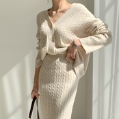 エレガントでおしゃれなニット&ロングスカートのセットアップです。