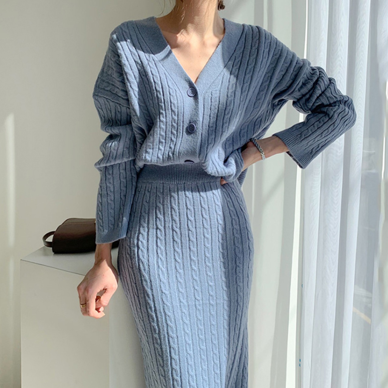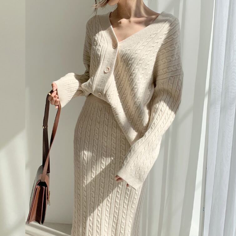 セットアップ 2点セット ロング丈 スカート ニット 長袖 Vネック 上下セット かわいい 大人可愛い きれいめ シンプル 大人 上品 おしゃれ 大人可愛い 大人女子 こなれ感 セクシー エレガント 存在感 スタイリッシュ レディース OL 学生 デート お出かけ 女子会 日常使い 休日 体型カバー モテ スタイルアップ 秋 冬 ゆったり