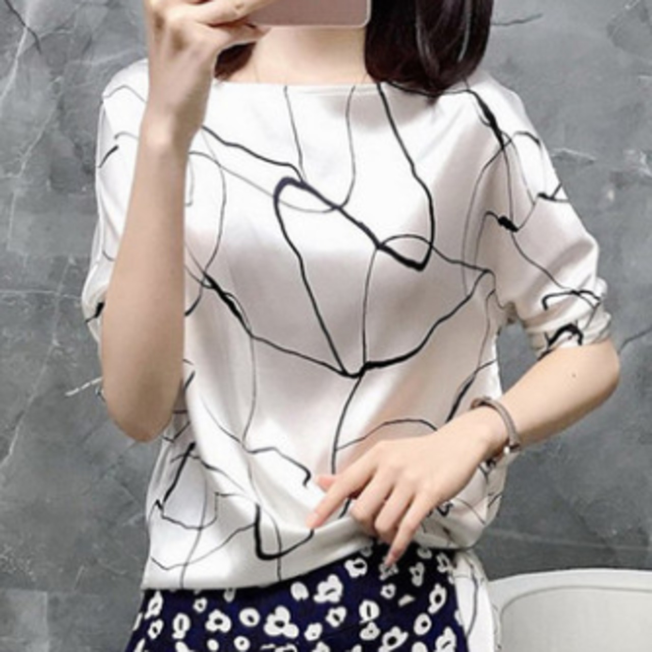 ブラウス カットソー 七分袖 ラウンドネック シフォン リボン ウエストリボン グラフィック かわいい 大人可愛い きれいめ シンプル カジュアル 大人 上品 おしゃれ レトロ エキゾチック 大人カジュアル 大人女子 こなれ感 個性的 クール 存在感 とろみ感 シック 春 夏 秋 冬 オールシーズン レディース OL 通勤 学生 通学 デート お出かけ 女子会 お泊まり 旅行 リモート会議 着回し 普段使い デイリー スタイルアップ コーデ きちんと感 日常使い 休日 大人カラー