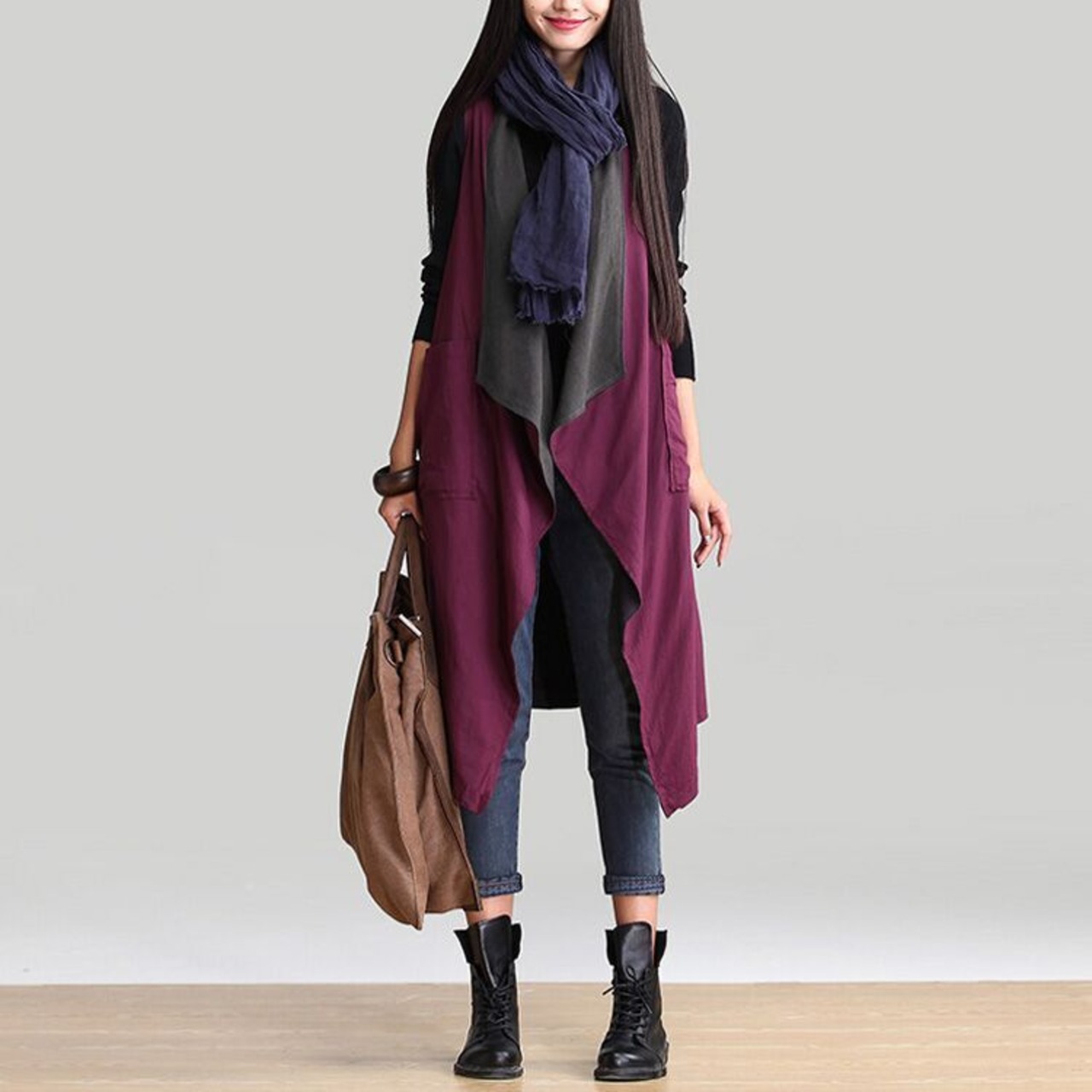 アウター ジャケット ミディアム丈 袖なし ノースリーブ 襟なし ポケット 前開き 綿 カジュアル 大人 上品 おしゃれ かっこいい 大人女子 こなれ感 個性的 クール モード系 存在感 無地 春 秋 30代 40代 50代 レディース 女性用 OL 通勤 デート お出かけ イベント リゾート 旅行 ホテル 普段使い 重ね着 ファッション コーデ スタイル フリーサイズ 大きめ 大人カラー