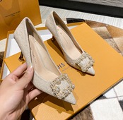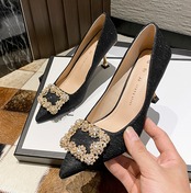 ビジューのついたエレガントなデザインのパンプスです。