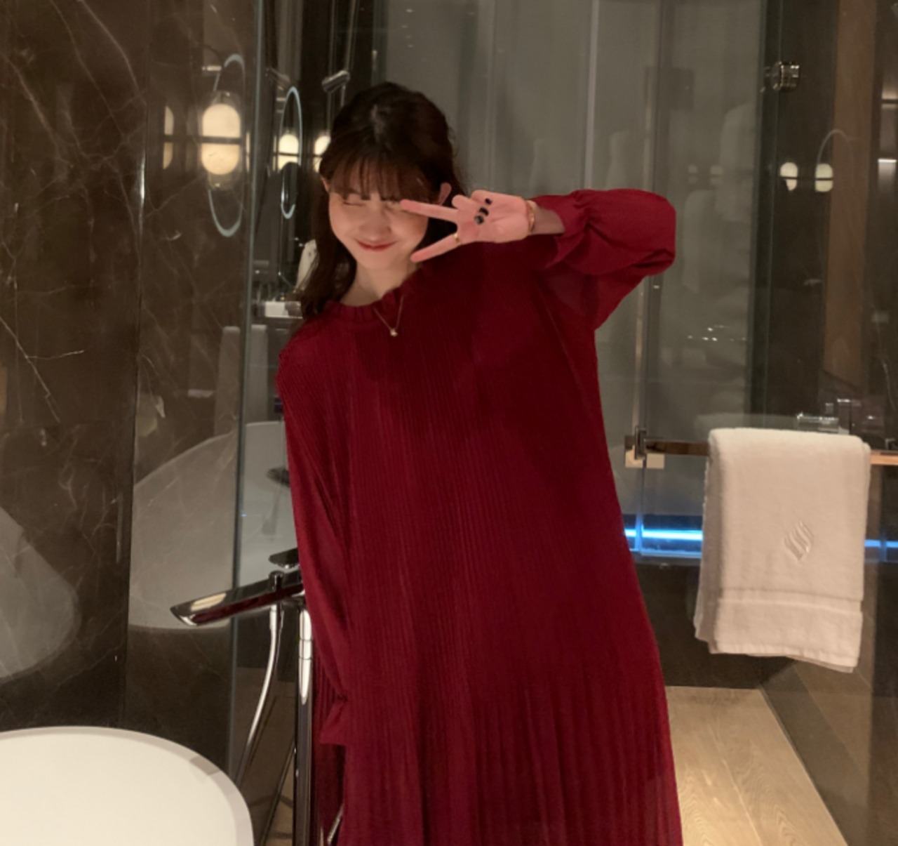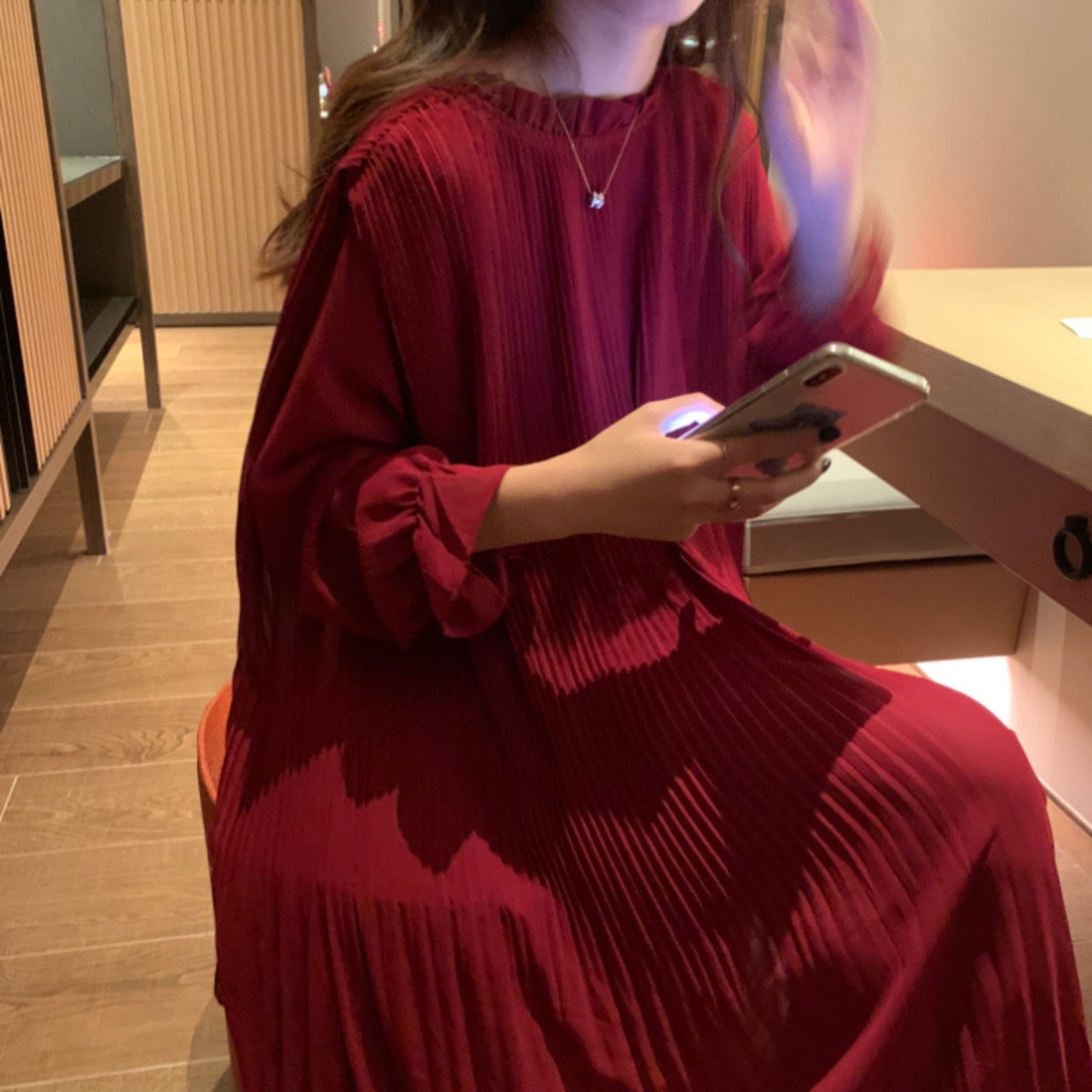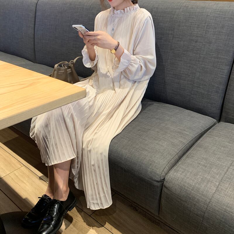 ふんわり感が大人可愛いプリーツシャツワンピース。