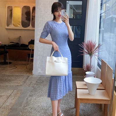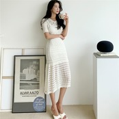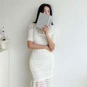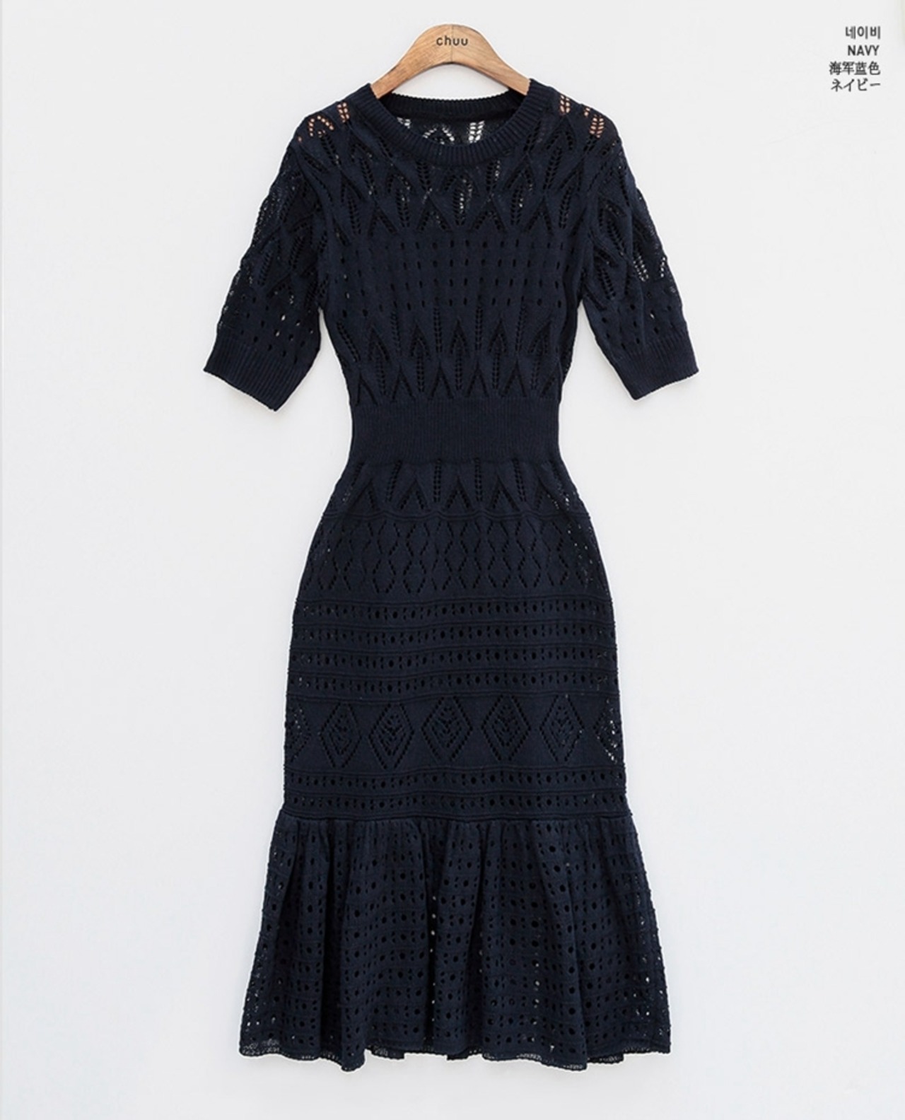 ワンピース レース ワンピドレス 膝丈 ひざ丈 ミディアム丈 袖あり 半袖 5分袖 7分袖 ラウンドネック クルーネック 襟なし フレア タイト 細身 Iライン レース 切り替えデザイン クロシェ 編み込み 伸縮性 ニット サマーニット 大人可愛い きれいめ 上品 おしゃれ かっこいい 大人可愛い 大人女子 こなれ感 ラブリー キュート 主役級 無地 柄 春 夏 秋 謝恩会 二次会 レディース 女性用 デート お出かけ 女子会 オルチャン ファッション フリーサイズ ホワイト ブラック ブルー ネイビー