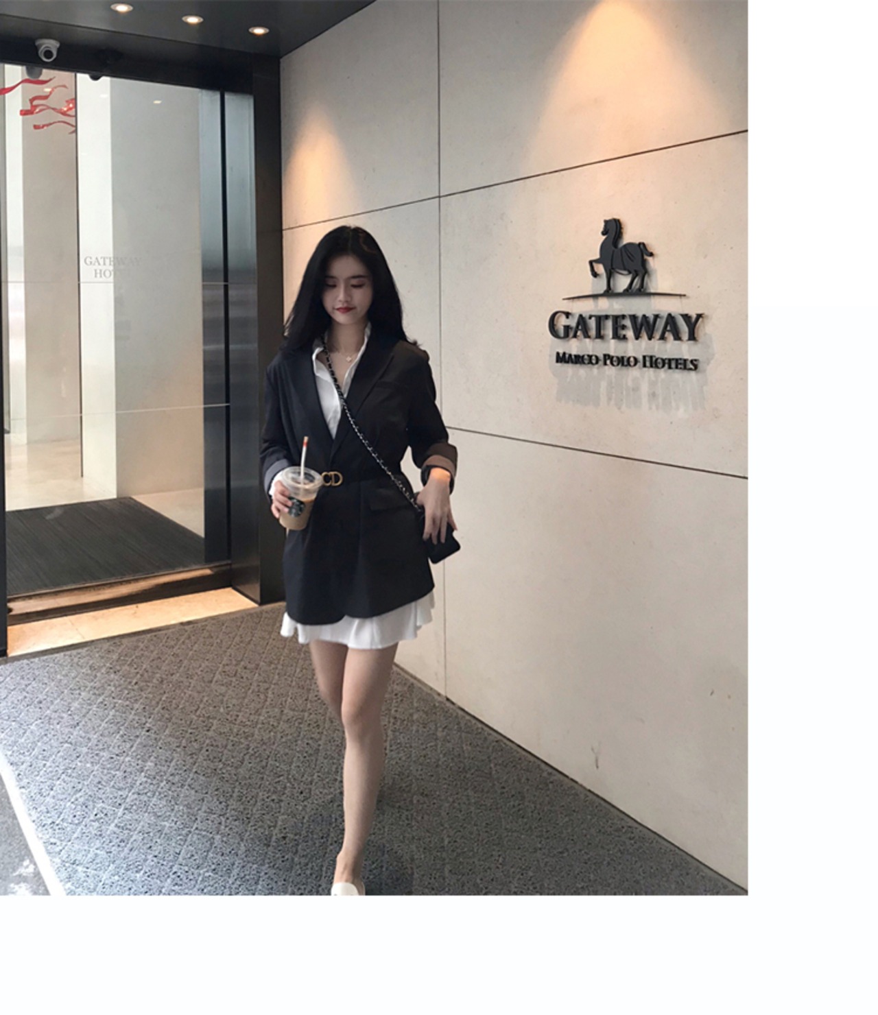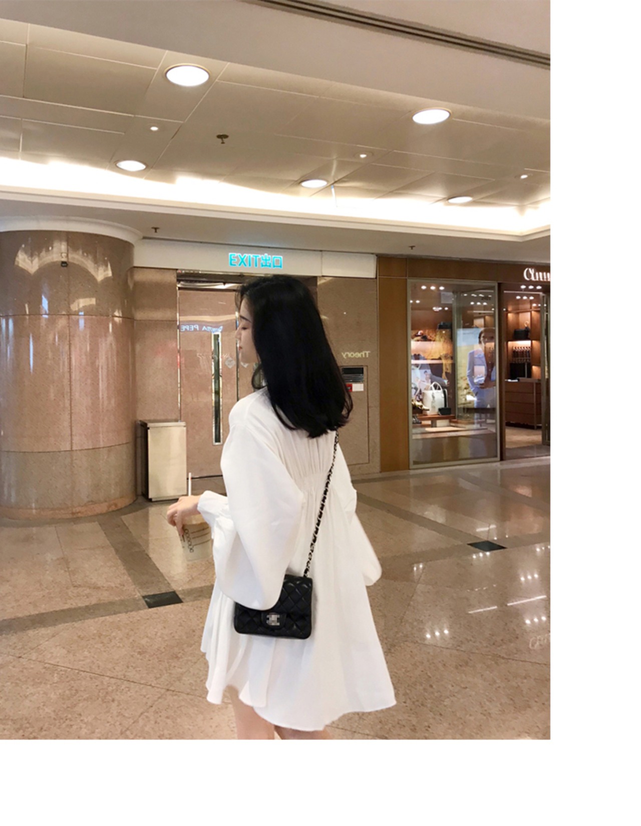 ギャザーから広がるふんわりとしたスカートが女性らしさを引き立てる魅力的な一着です。