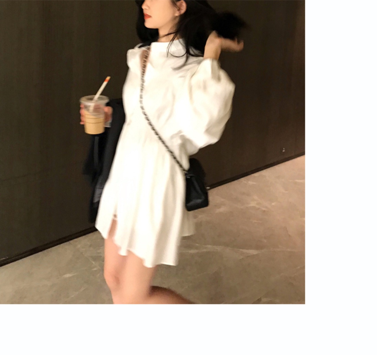 大きなボリューム袖が可愛いミニ丈のシャツワンピースです。