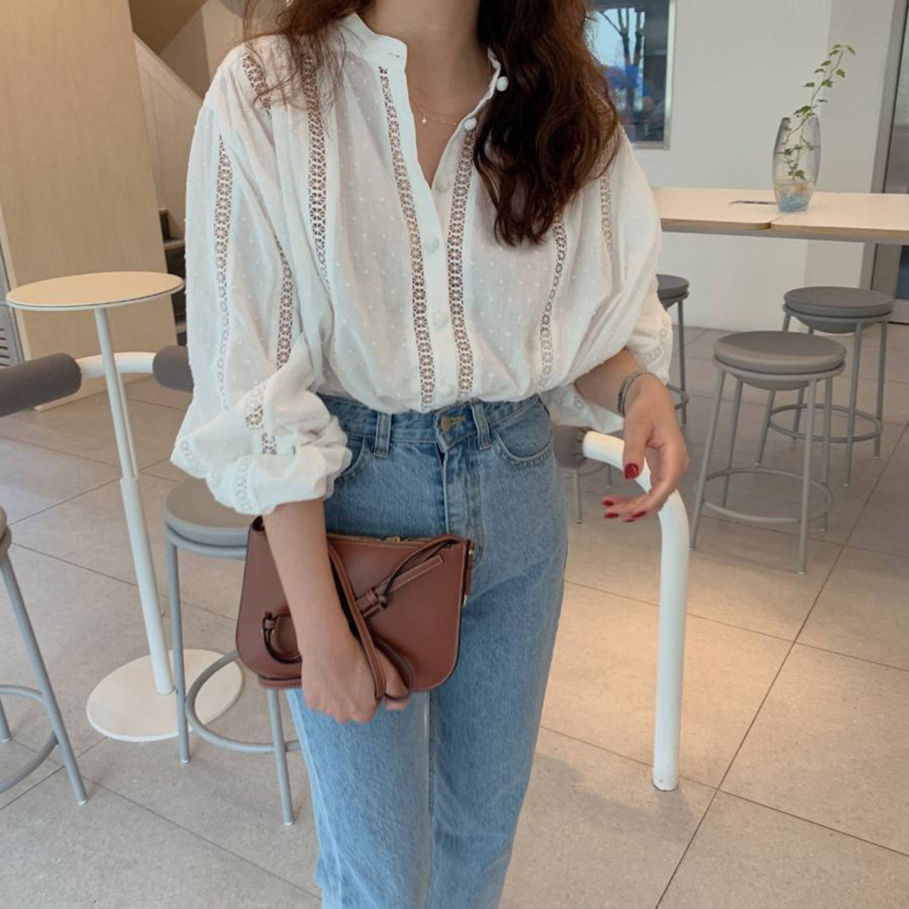 トップス シャツ ブラウス 袖あり 長袖 パフスリーブ Vネック クルーネック レース 前開き 透け感 ボタン かわいい 大人可愛い きれいめ シンプル カジュアル 大人 上品 おしゃれ お洒落 大人女子 こなれ感 ラフ キュート ガーリー エレガント 抜け感 フェミニン 無地 ドット柄 春 夏 秋 レディース 女性用 デート お出かけ 休日 着回し 普段使い 楽ちん モテ 体系カバー プレゼント ギフト 白 ホワイト