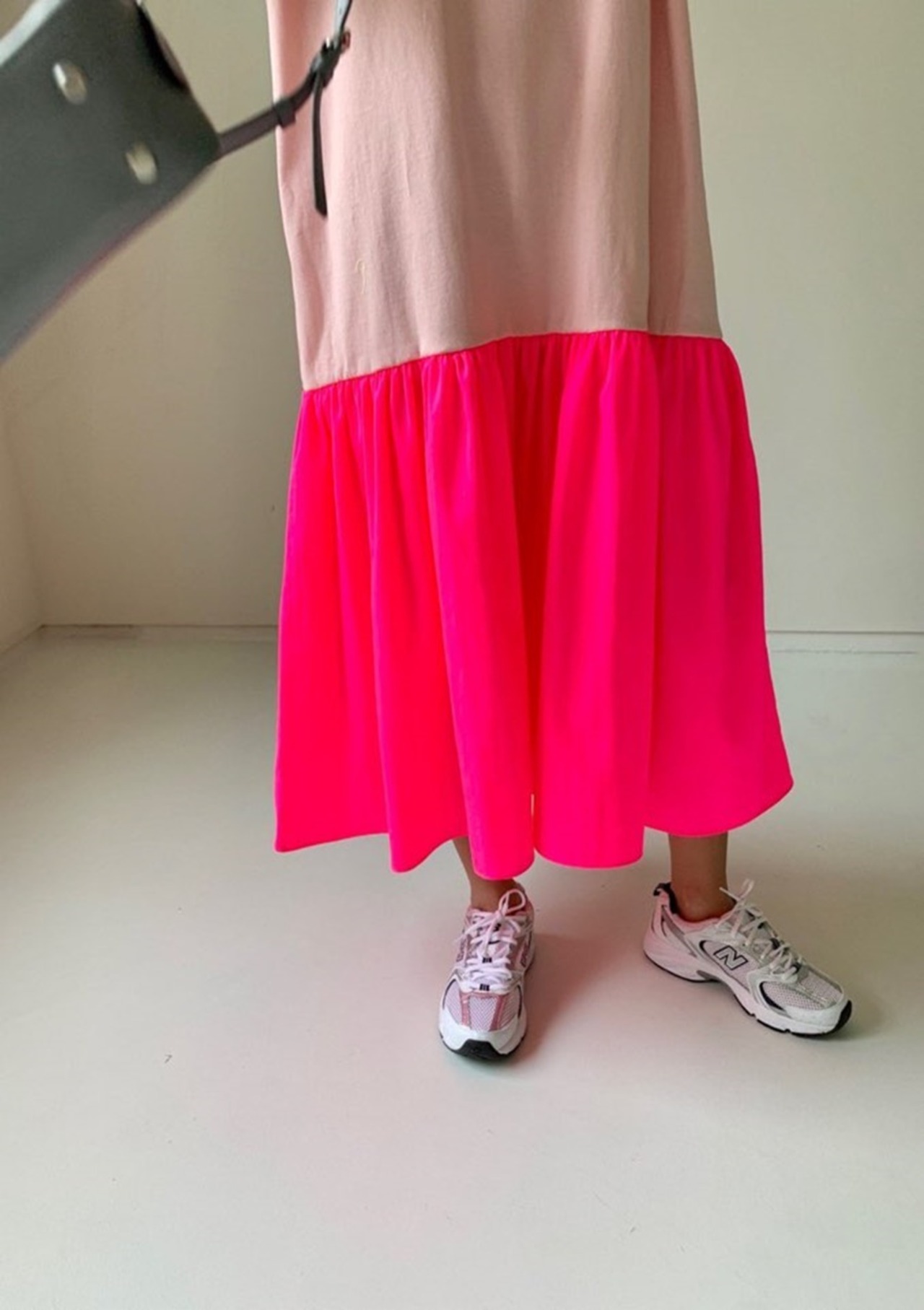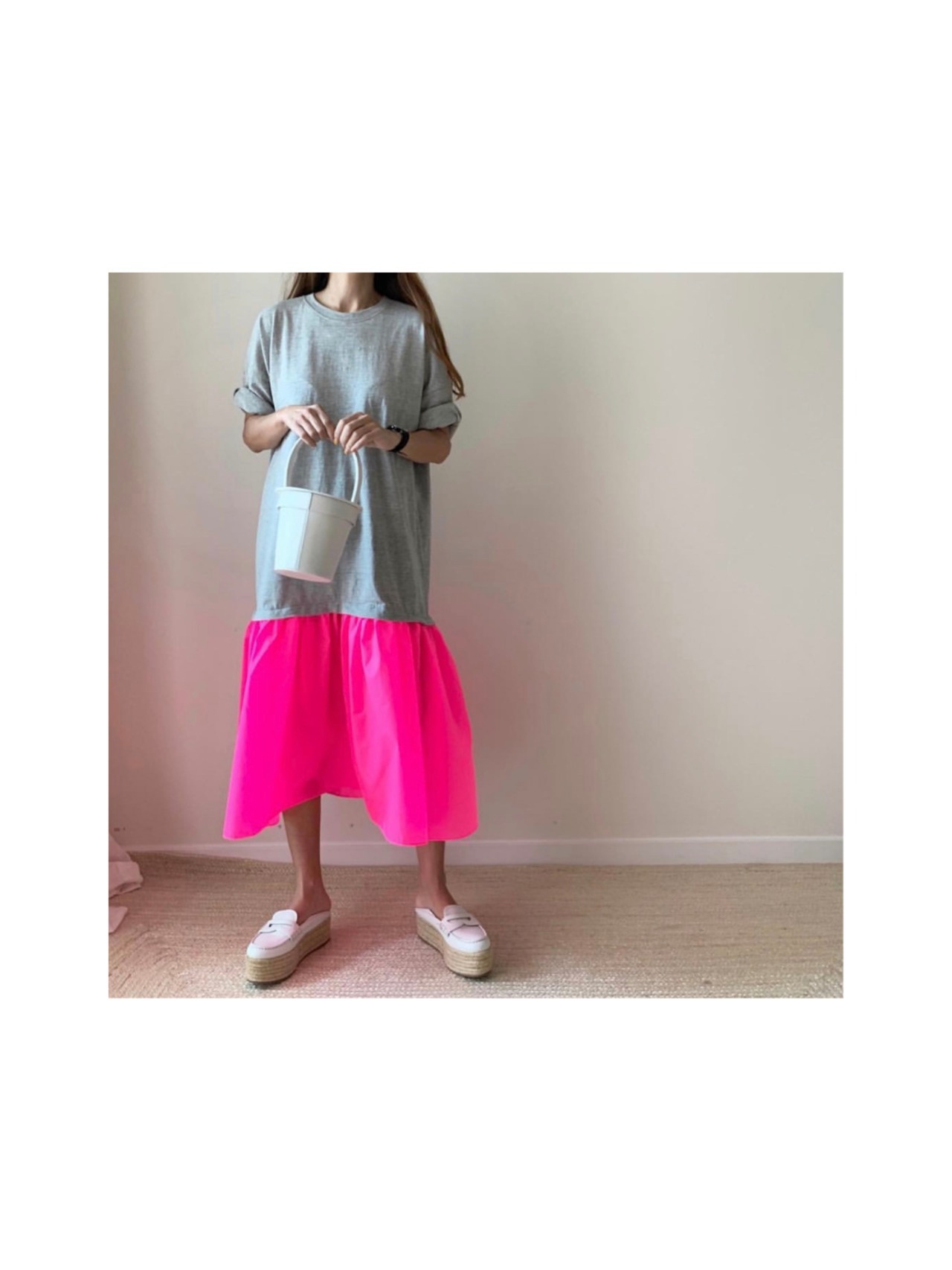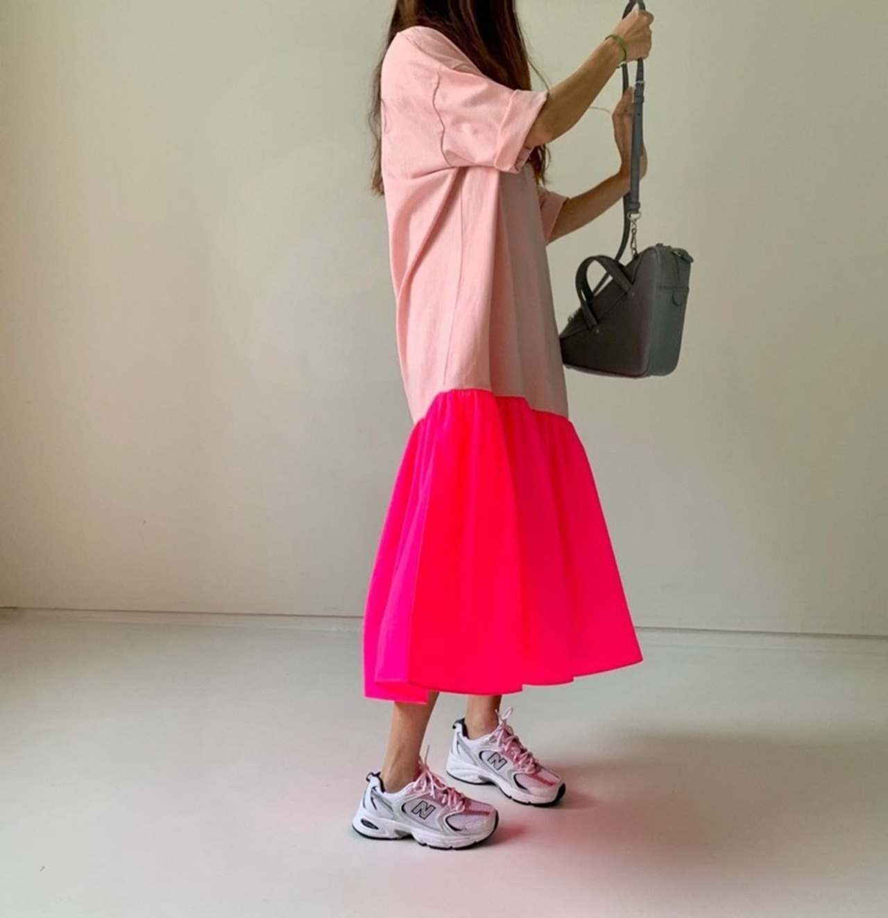 ネオンカラーの切り替えから広がる綺麗なマーメイドラインが、女性らしい雰囲気を演出します。