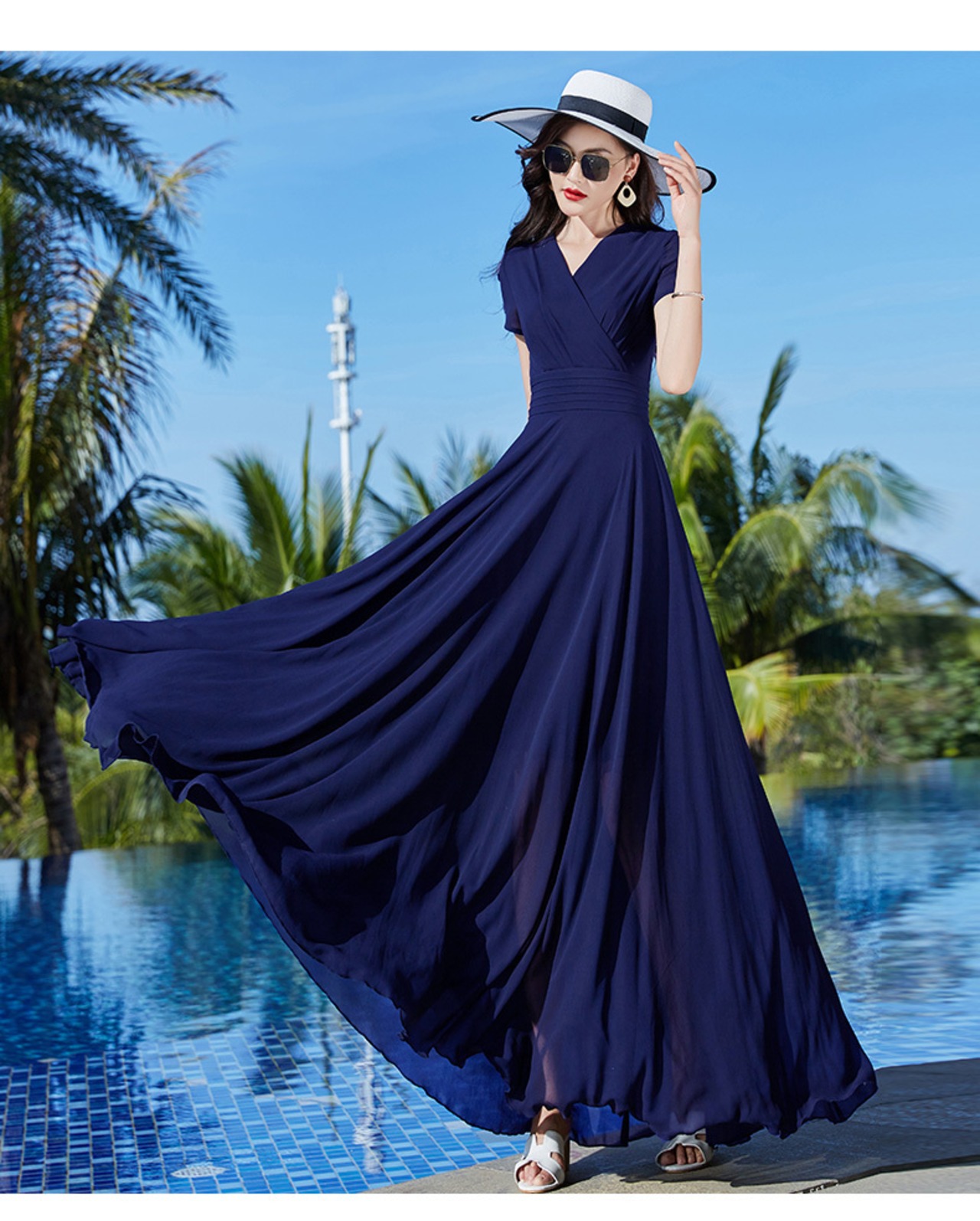 ワンピース フレアワンピース ロング ロング丈 マキシ マキシ丈 袖あり 半袖 Vネック カシュクール フレア Aライン シフォン ウエストマーク ハイウエスト 透け感 ポリエステル かわいい 大人可愛い きれいめ シンプル 大人 上品 おしゃれ お洒落 大人女子 こなれ感 キュート ガーリー エレガント モダン 主役級 存在感 抜け感 フェミニン ロマンチック 無地 春 夏 レディース デート お出かけ リゾート 旅行 海 着回し 普段使い 美脚 脚長 大きいサイズ ビッグサイズ プラスサイズ
