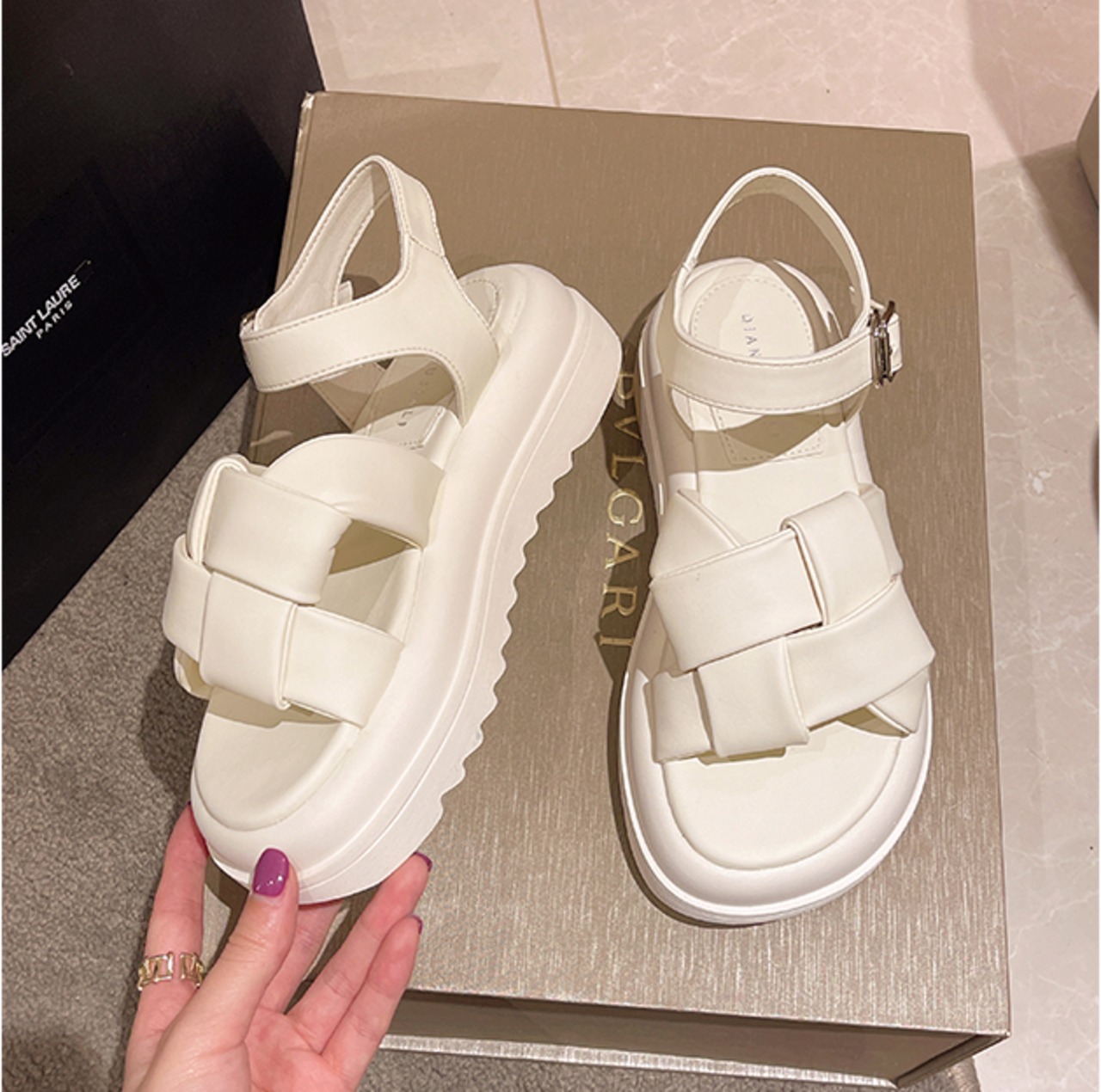 つま先までボリューム満載の厚底で安定感ばっちり