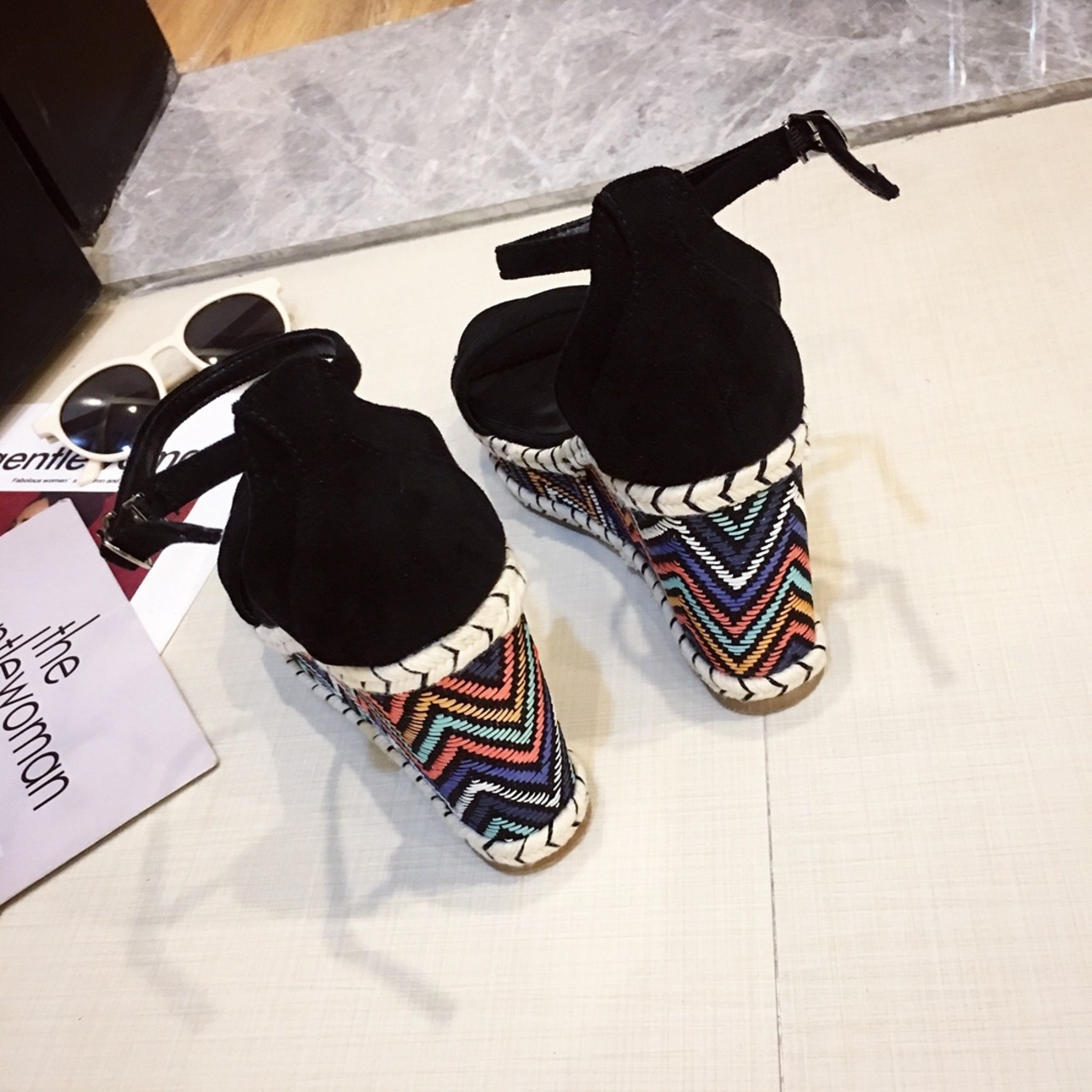 10cmヒールながら、厚底で安定したウエッジソール。