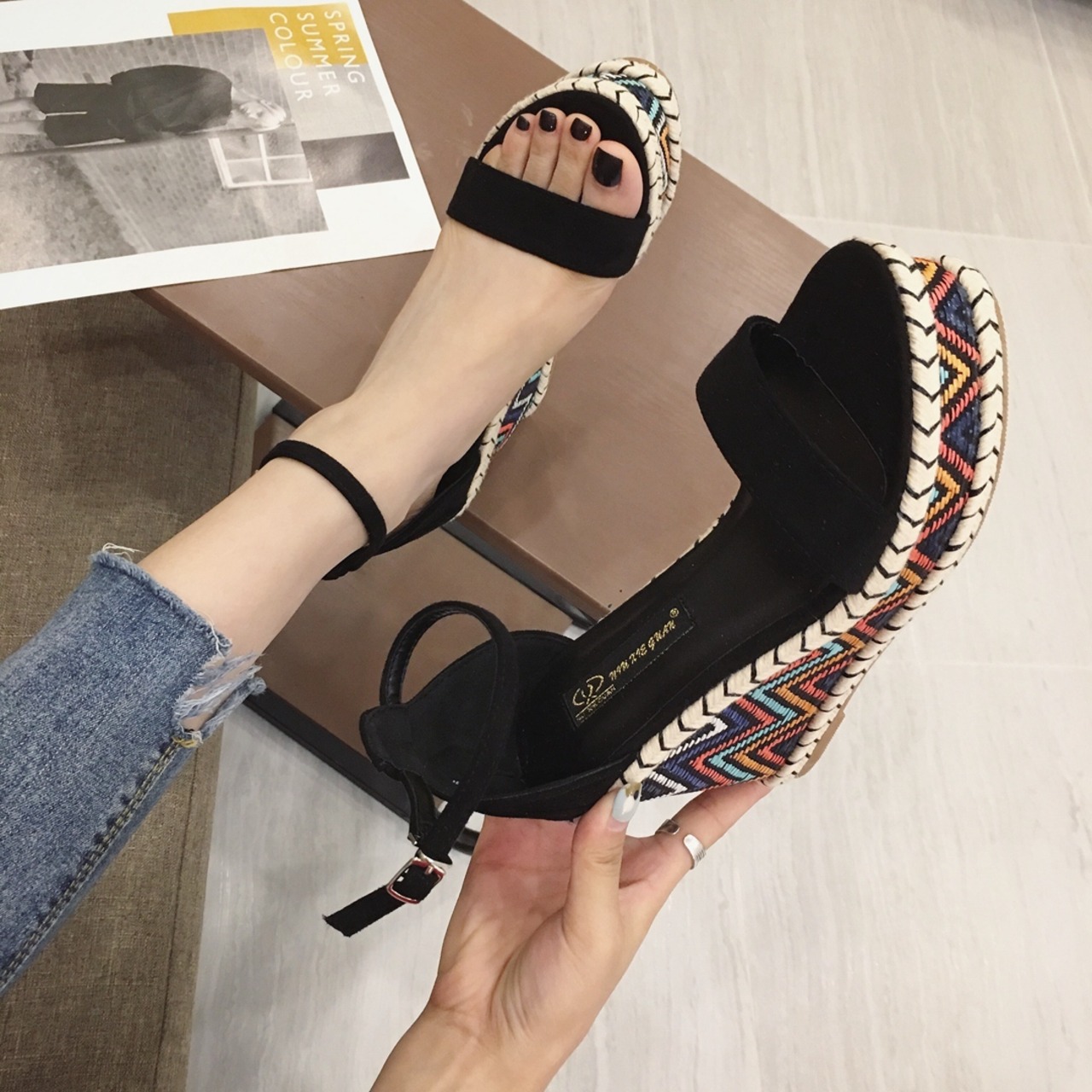 夏を感じさせるデザインのウエッジソールサンダルです。