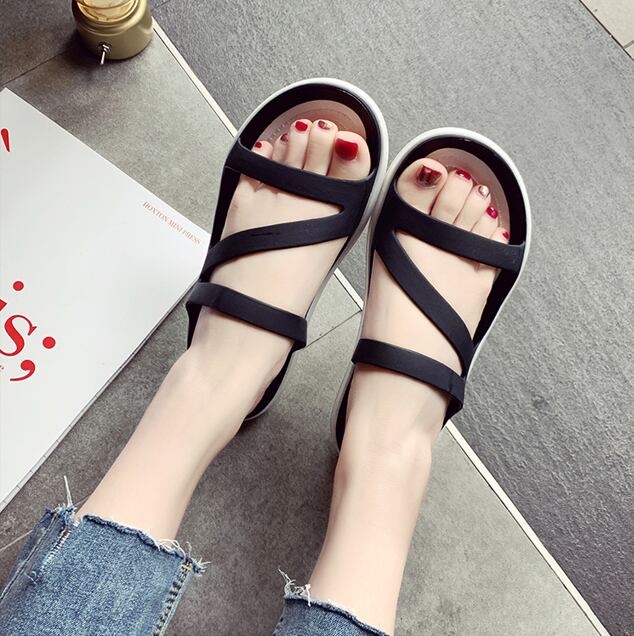 とてもオシャレなデザインで、ヒールのないぺったんこのサンダル。