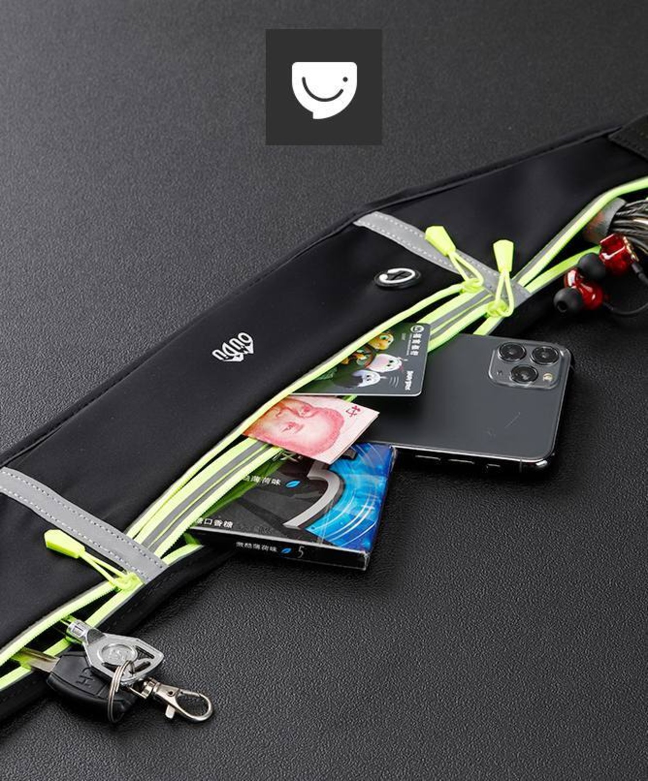 物を出し入れしやすい大きなポケットが付いたランニングポーチです。