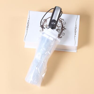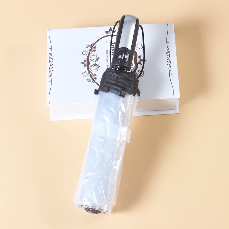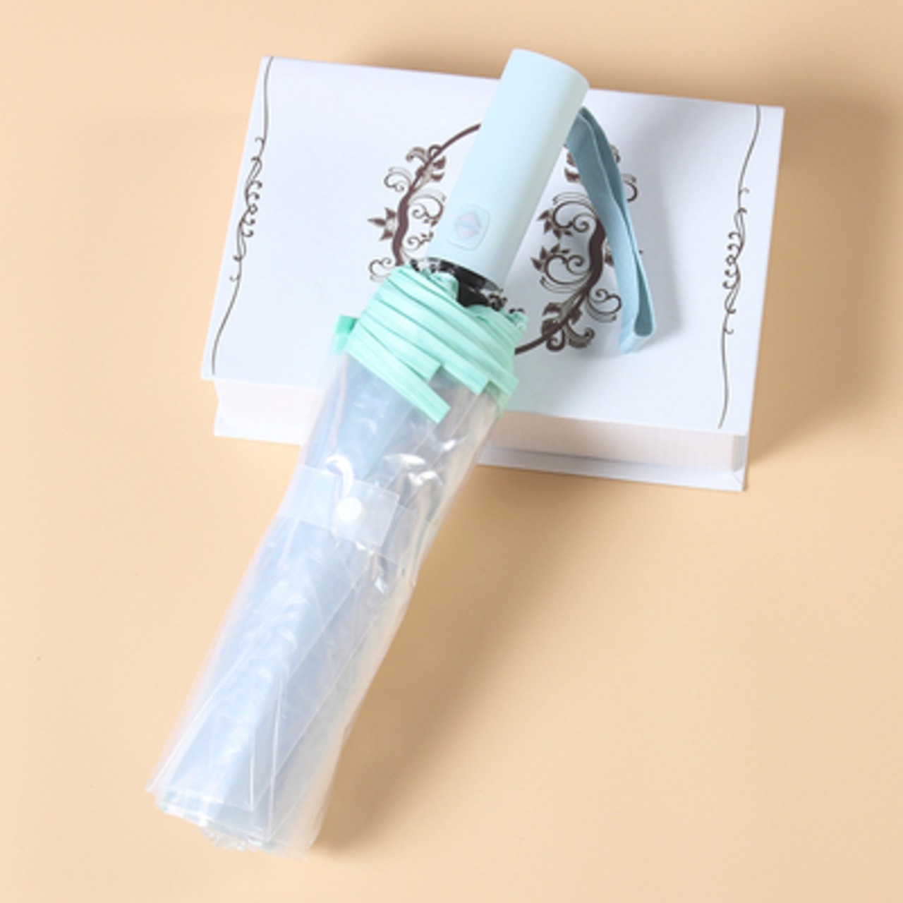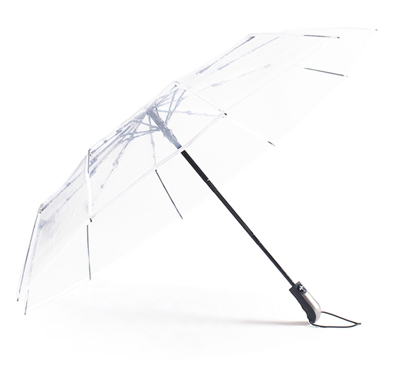 ボタンで開閉ができる折りたたみ式ビニール傘です。