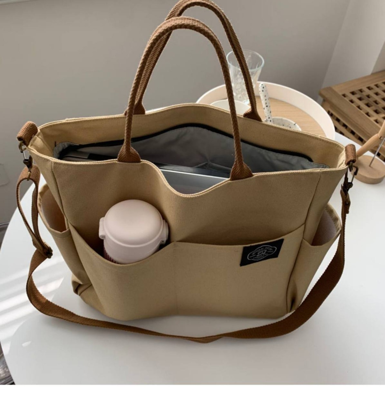 ポケットが沢山付いた、収納力が抜群なトートバッグです。