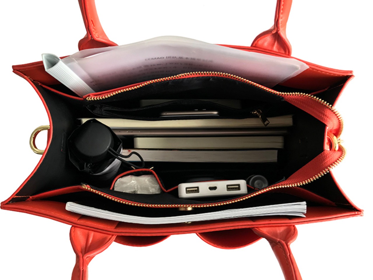中もジッパー付きで貴重品など入れておけるスペースに両サイドの小分け収納もあります。