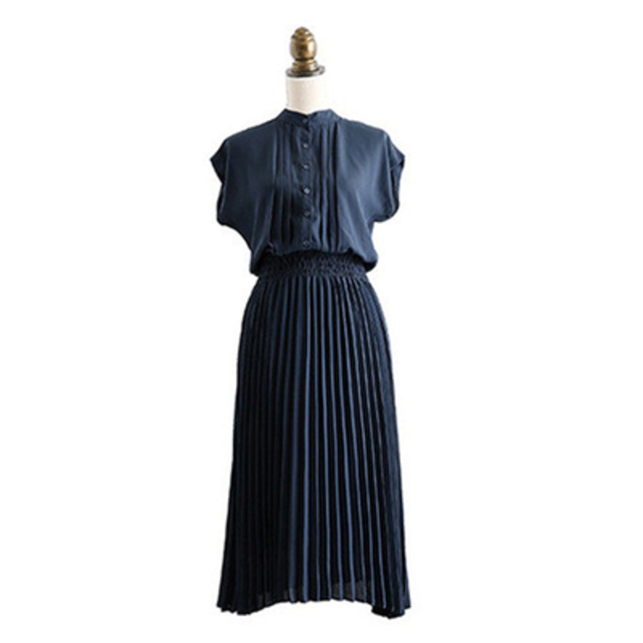 ウエストマークやプリーツスカートが、スタイルを良く見せてくれます。
