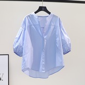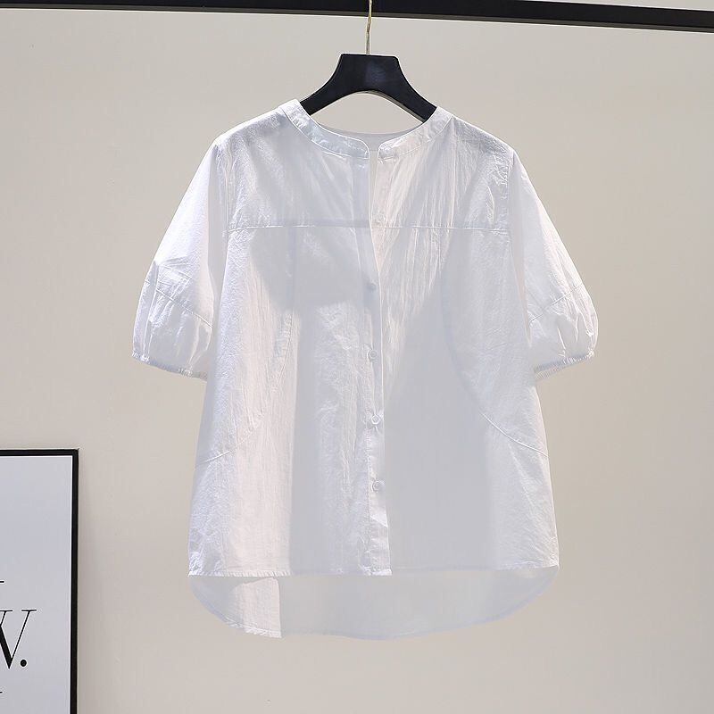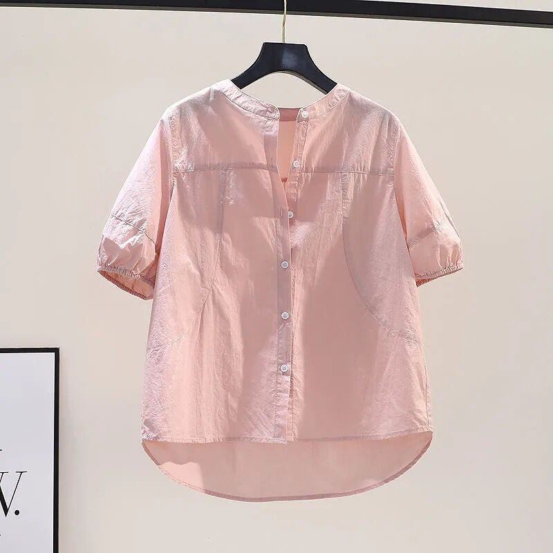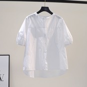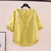 トップス ブラウス 袖あり 半袖 パフスリーブ スタンドカラー スマート 綿 リネン かわいい 大人可愛い きれいめ シンプル カジュアル 大人 上品 おしゃれ お洒落 大人可愛い 大人女子 こなれ感 ラフ キュート 無地 夏 10代 20代 30代 オフィス ビジネス OL 通勤 学生 通学 デート お出かけ 女子会 レストラン 着回し 普段使い ファッション コーデ スタイル 楽ちん モテ サイズ M L XL 2XL 3XL 色展開 ホワイト ブルー グリーン イエロー ピンク