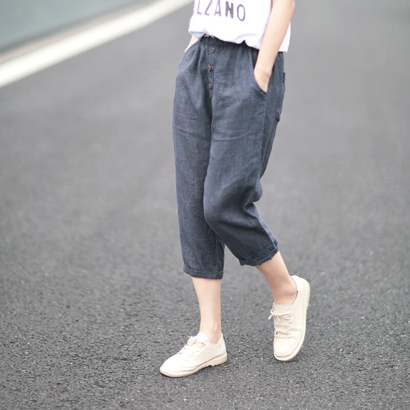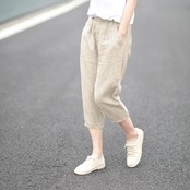 薄手の生地で仕立てたリネンクロップドパンツ。