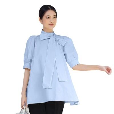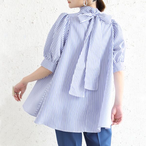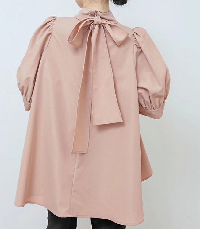 トップス シャツ ブラウス 袖あり 半袖 パフスリーブ ハイネック Aライン リボン バックリボン 大人可愛い きれいめ シンプル 大人 上品 おしゃれ お洒落 大人女子 こなれ感 ラフ ラブリー キュート ガーリー エレガント 抜け感 春 夏 秋 2022 2023 10代 20代 30代 40代 50代 60代 レディース 女性用 デート お出かけ 休日 フリーサイズ 白 ホワイト 黒 青 ブルー 緑 グリーン カーキ ピンク 水色
