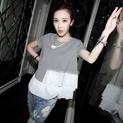 シフォンのフリルがドッキングしたデザイン性のあるTシャツです。