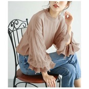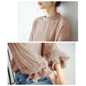 ボリューミーな袖が女性らしい印象の長袖トップスです。