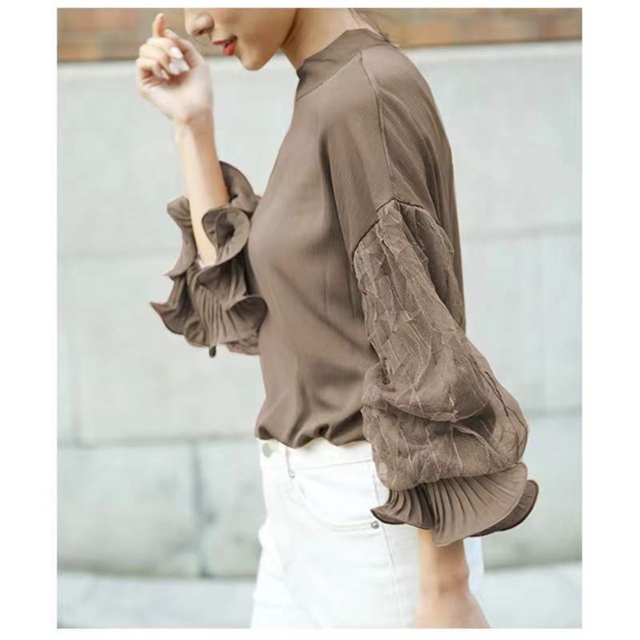 トップス ブラウス 袖あり ボリューム袖 ラウンドネック チュール シフォン 大人可愛い 大人 上品 おしゃれ お洒落 こなれ感 ラフ ラブリー キュート ガーリー エレガント 主役級 存在感 春 秋 冬 2022 2023 10代 20代 30代 40代 レディース 女性用 デート お出かけ 休日 ファッション コーデ スタイル 楽ちん モテ M L 黒 ブラック ブラウン ピンク