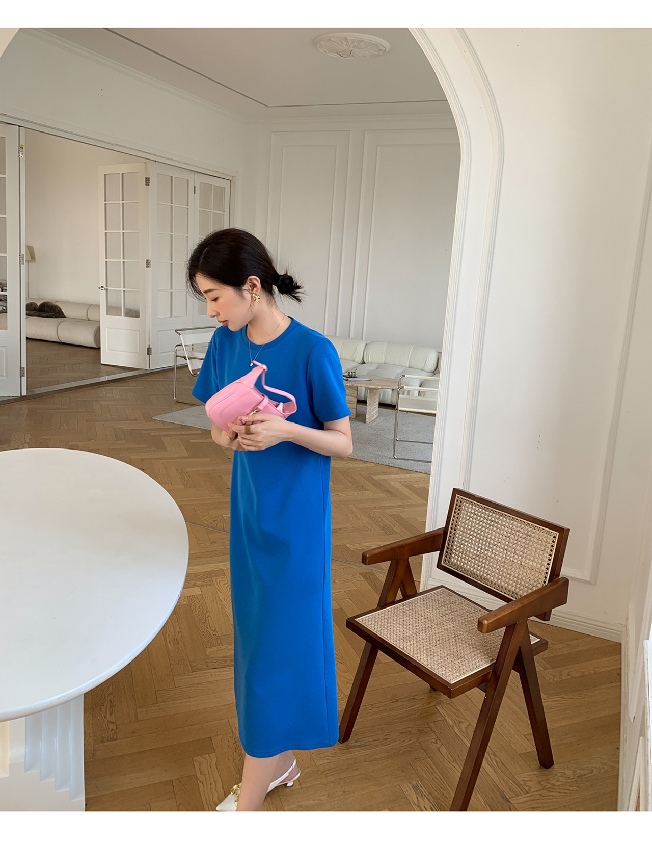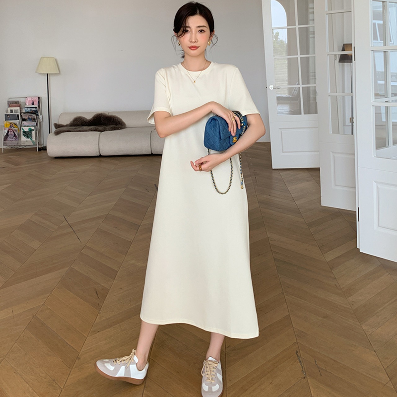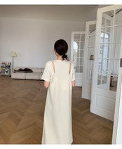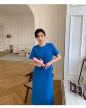 ワンピース 膝下 ミモレ ミモレ丈 袖あり 半袖 ラウンドネック Aライン バックシャン バックコンシャス きれいめ シンプル カジュアル 大人 上品 おしゃれ お洒落 かっこいい 大人女子 こなれ感 ラフ セクシー 無地 春 夏 秋 2022 2023 10代 20代 30代 レディース 女性用 お出かけ 女子会 休日 アウトドア パーティー イベント リゾート 旅行 S M L 白 ホワイト 黒 青 ブルー