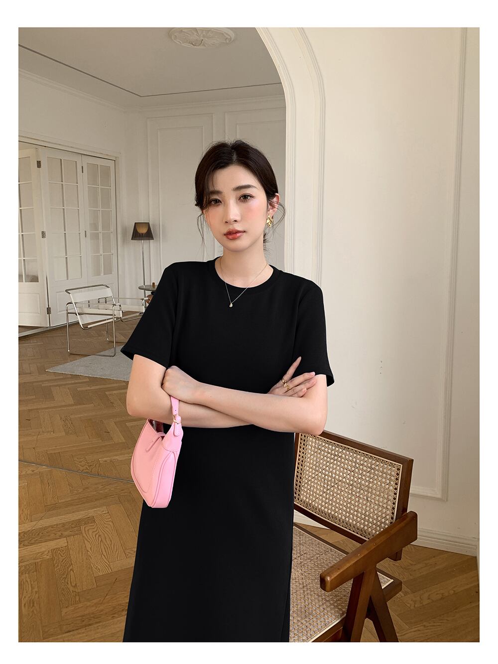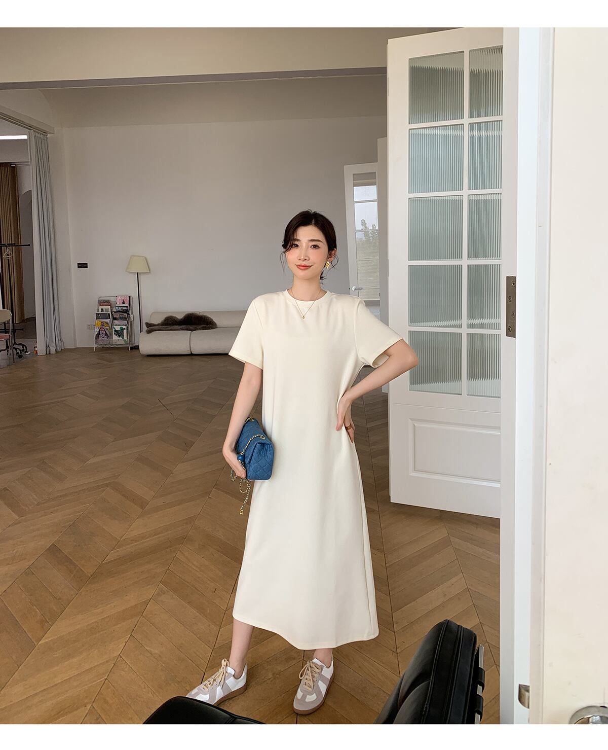 合わせる小物によって、カジュアルにも綺麗目にも来ていただけます。