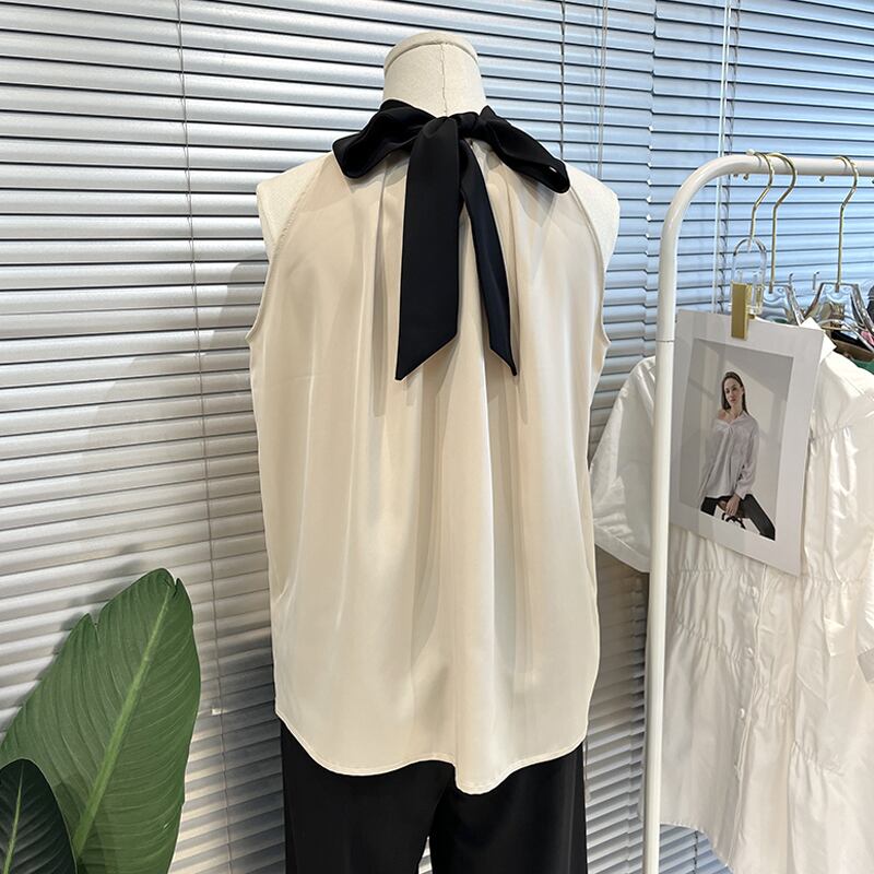 バックのリボンが大人可愛いノースリーブブラウスです。