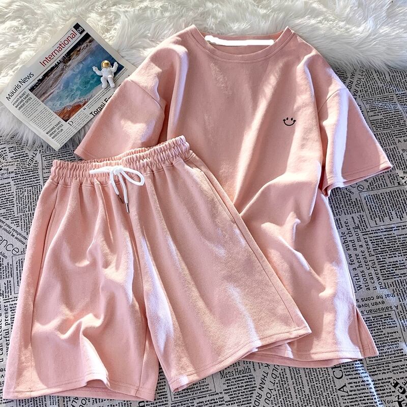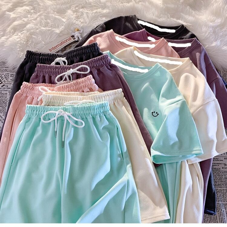 セットアップ Tシャツ 部屋着 ショートパンツ 袖あり 半袖 ラウンドネック 襟なし ポケット 綿 上下セット かわいい シンプル カジュアル ラフ ボーイッシュ スポーティー ラブリー キュート 個性的 無地 夏 10代 20代 レディース 女性用 学生 お泊まり 休日 運動 ヨガ リゾート 海 プール 着回し 普段使い 楽ちん プレゼント ギフト 定番 サイズ M L XL 2XL ゆったり 色展開 紫 パープル ベージュ ピンク ダークグレー