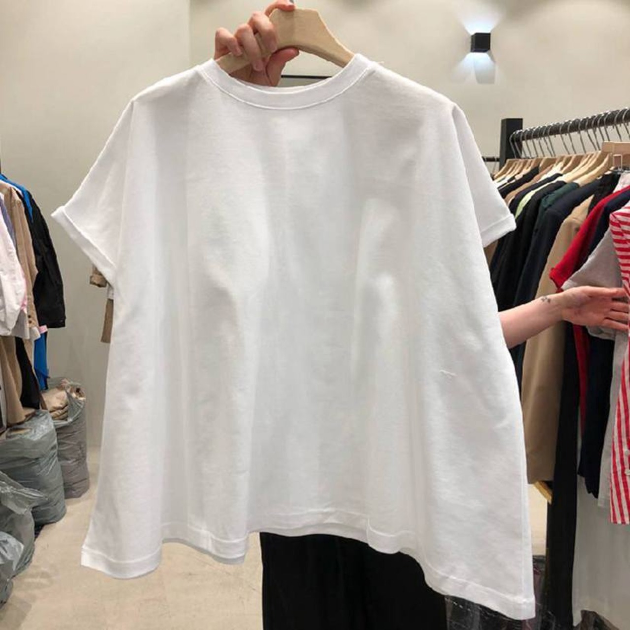 ボディラインを拾いにくいワイドな作りで体型カバーに期待できます。
