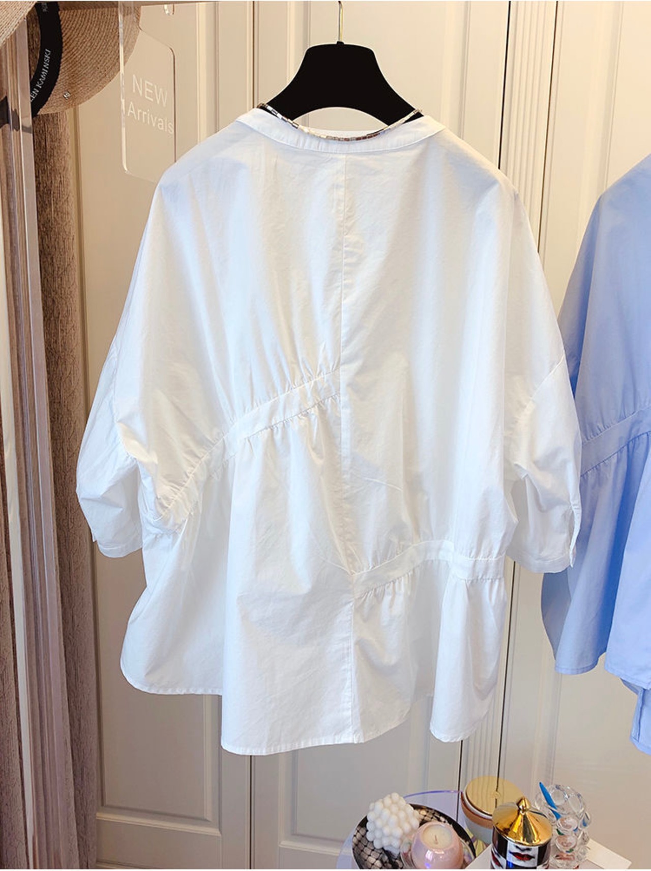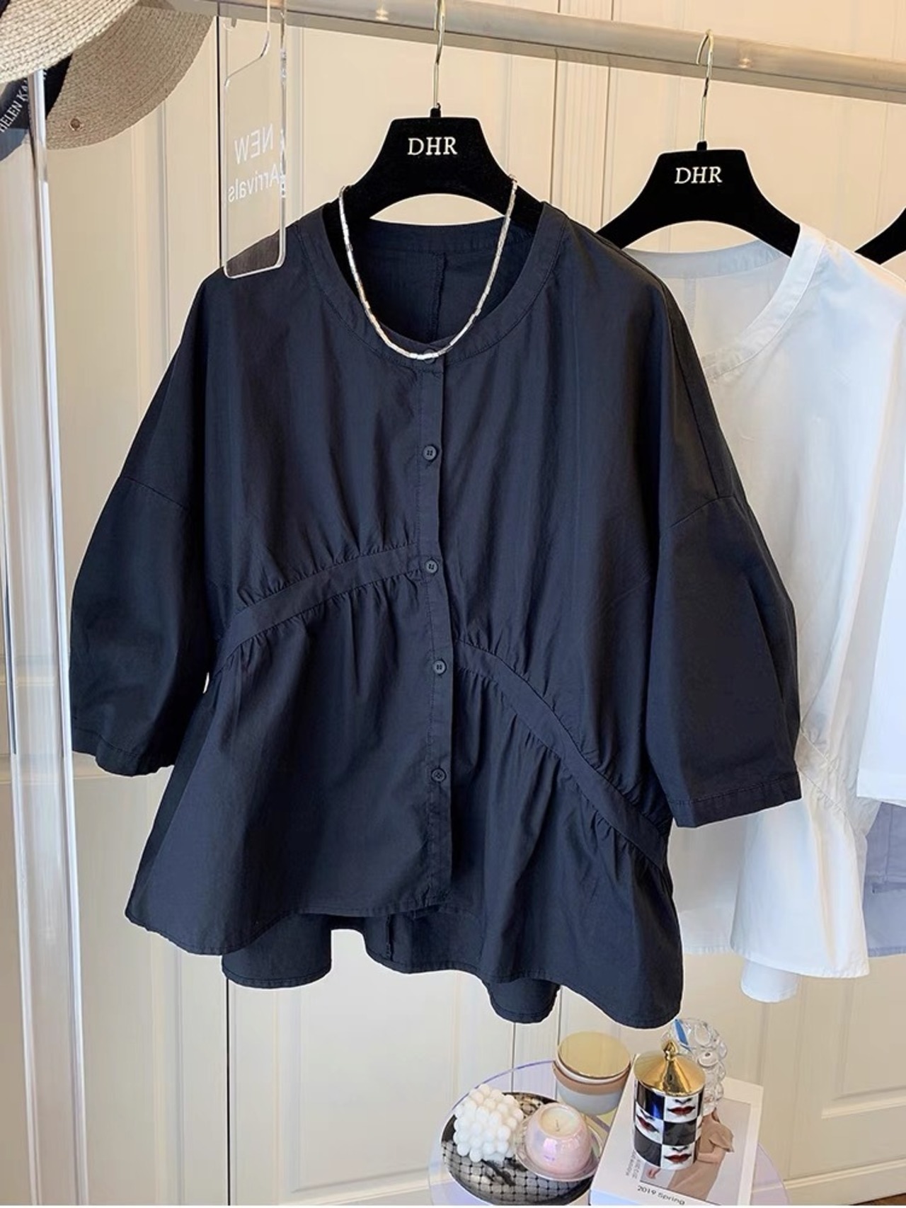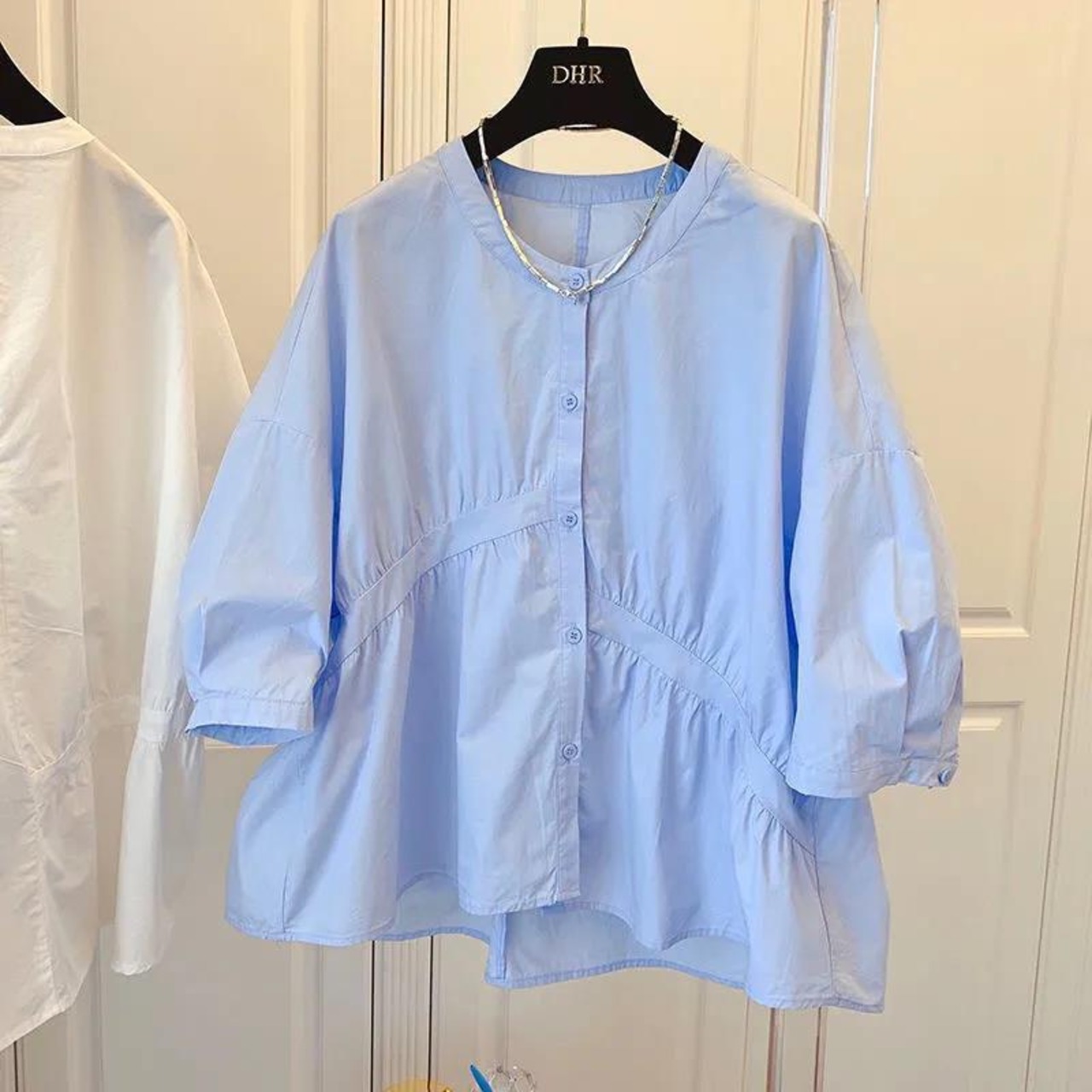 トップス シャツ ブラウス 袖あり ラウンドネック 大人可愛い きれいめ シンプル 大人 上品 おしゃれ お洒落 大人女子 こなれ感 キュート ガーリー ルーズ 春 夏 秋 2022 2023 10代 20代 30代 40代 50代 60代 レディース 女性用 女の子 お出かけ 休日 ファッション コーデ スタイル 楽ちん モテ M L XL 白 ホワイト 青 ブルー ネイビー