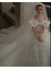 ボリューミーなスカートが可愛らしさ溢れるウエディングドレスです。