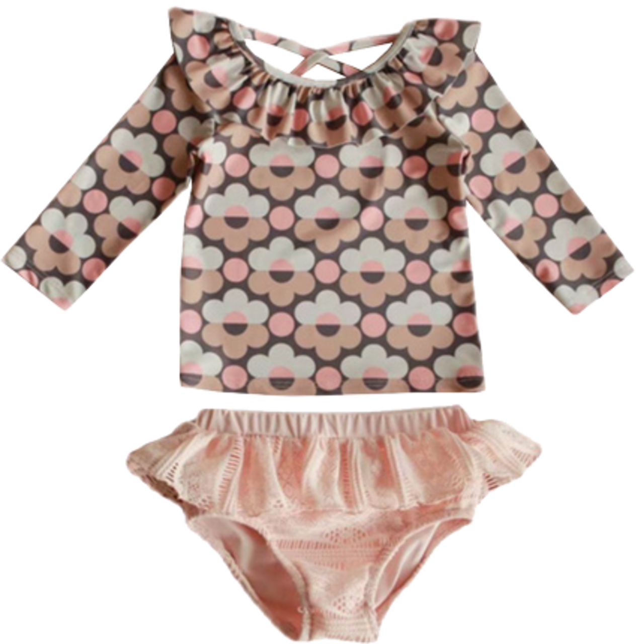 【子ども】女の子 長袖水着 きいろ palm Trees ヤシの木 ピンク 花柄 five petals