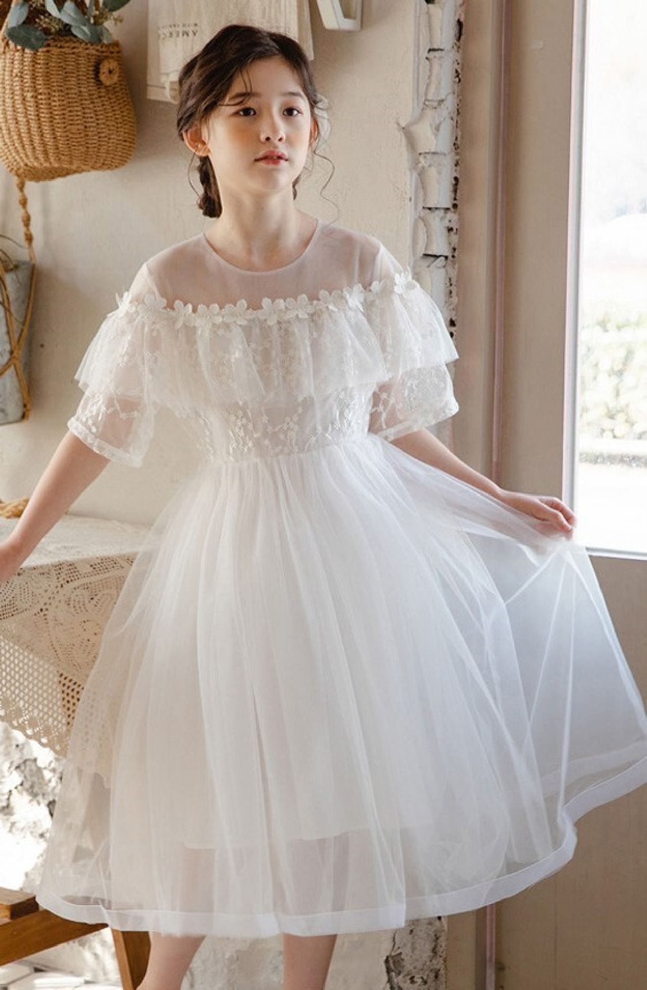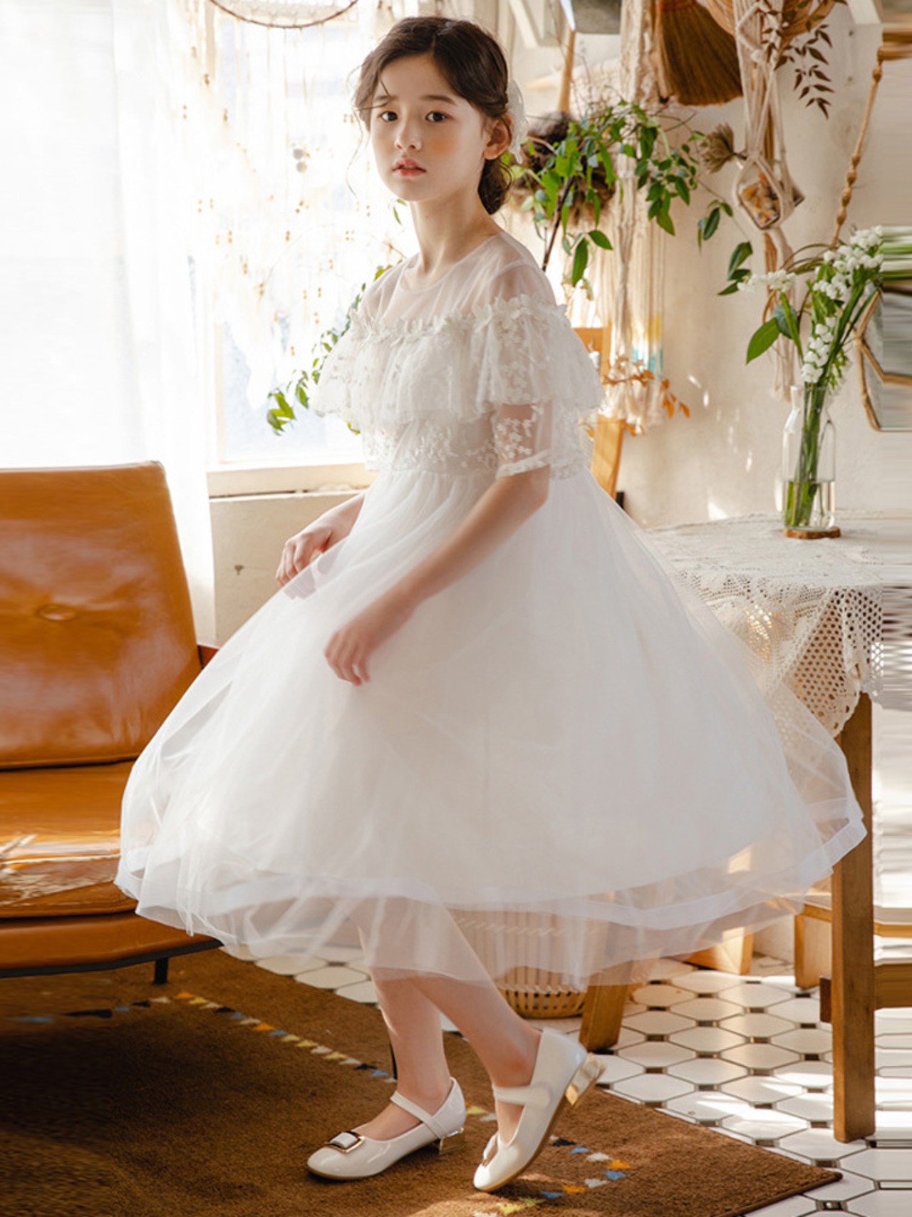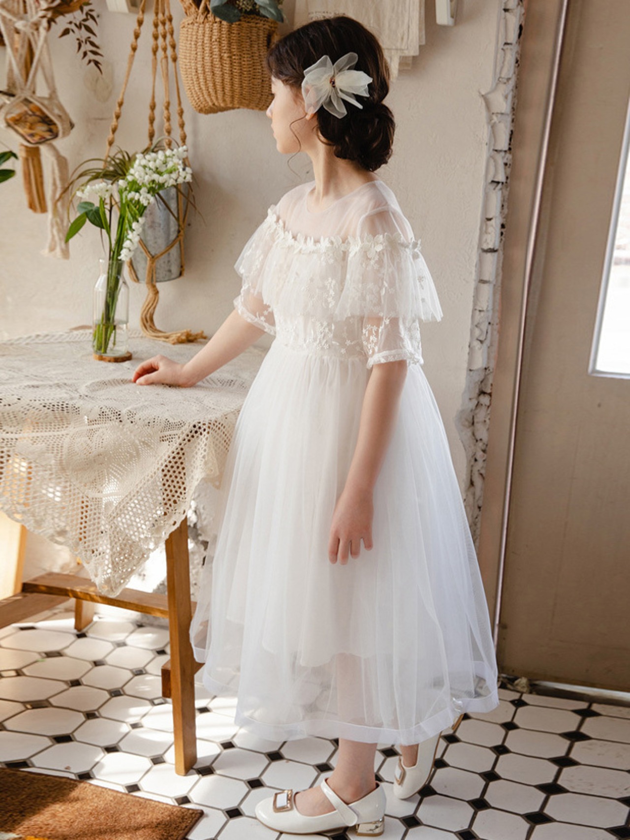 【子ども】女の子 とってもかわいい プリンセス 白いレースのお姫様ワンピース 110 120 130 140 150 160 cm 発表会 結婚式 ベールガール フラワーガール