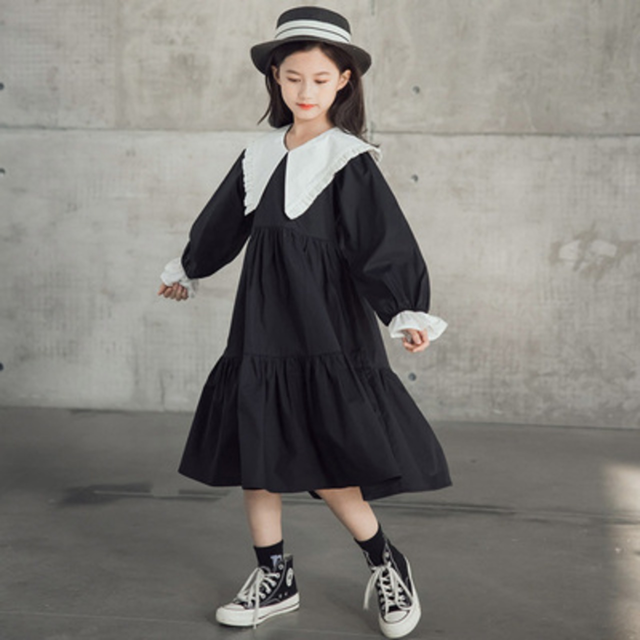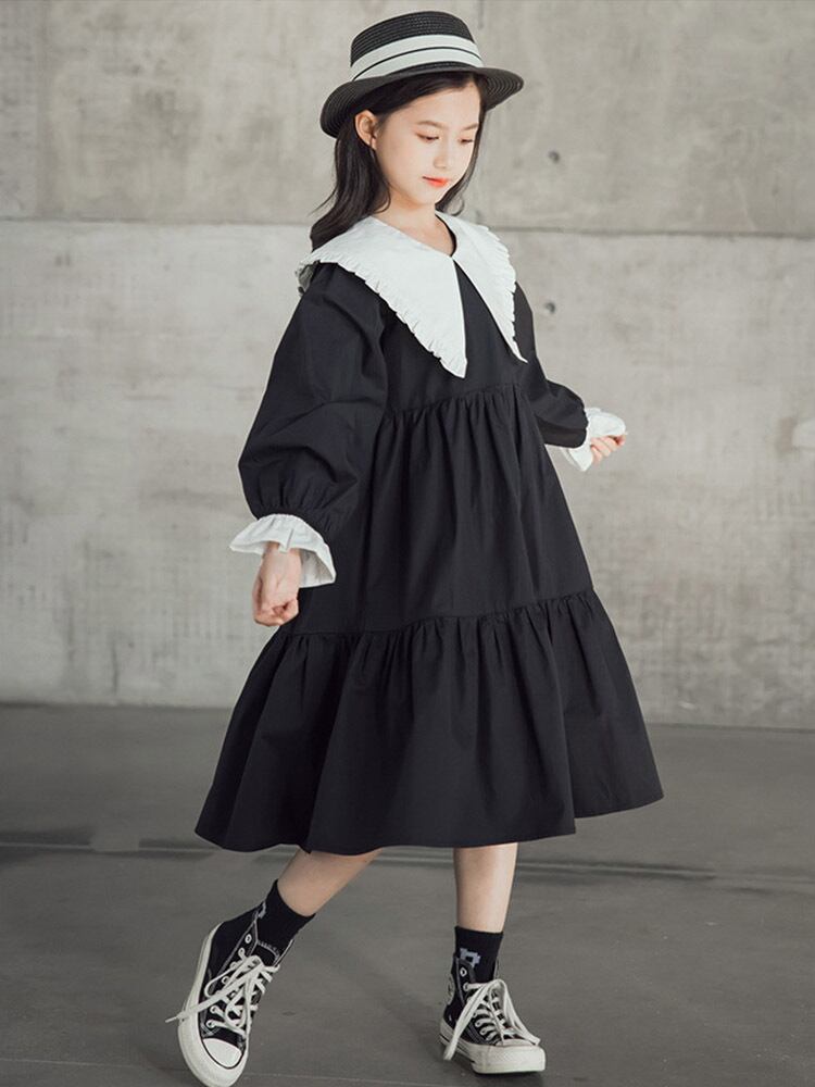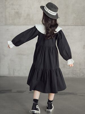 【子ども】大きなフリル襟のワンピース 120 130 140 150 160cm ガーリー モノトーン お出かけ リゾート