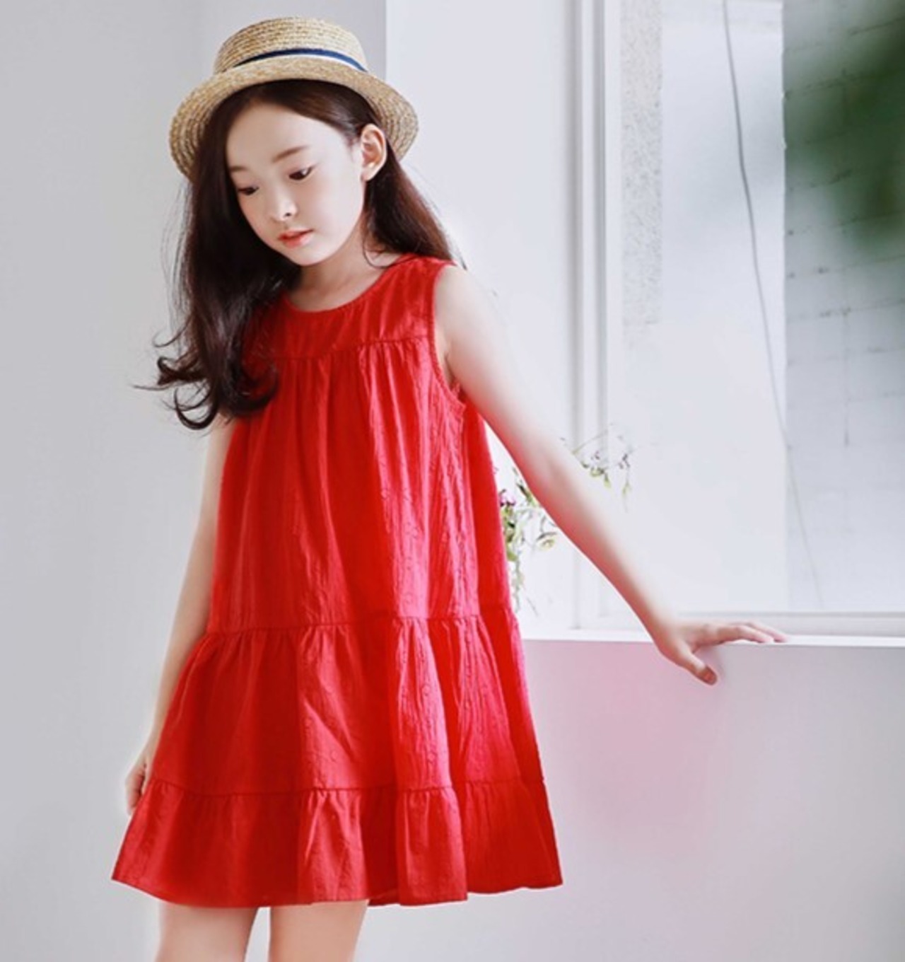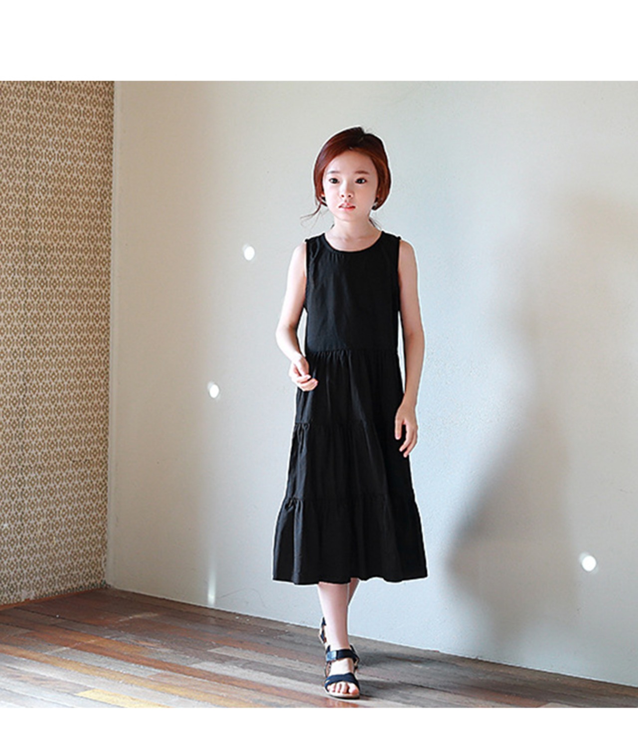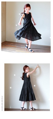 【子ども】女の子 ノースリーブフレアーワンピース ブラック レッド イエロー 110 120 130 140 150 160cm お出かけ リゾート