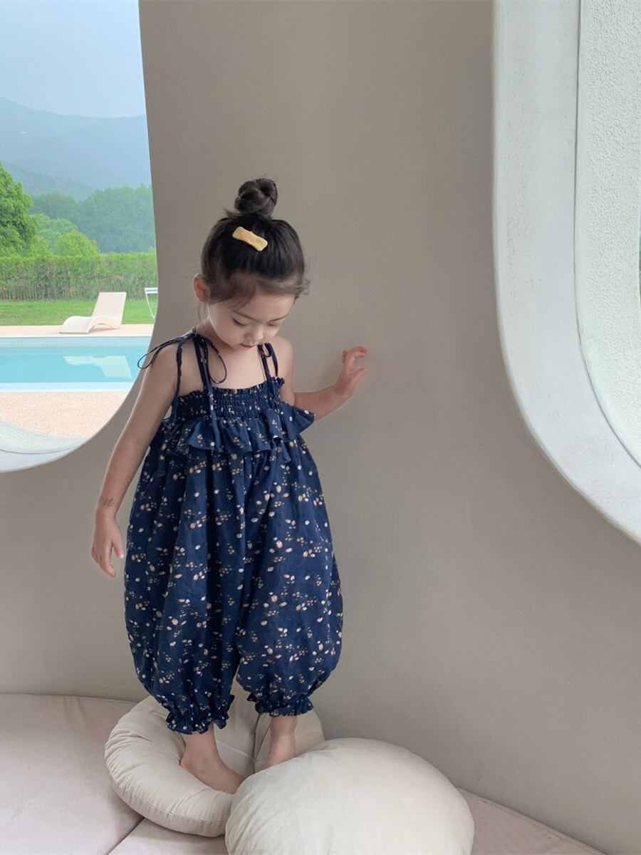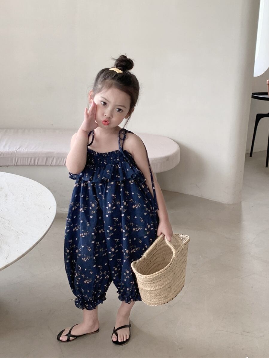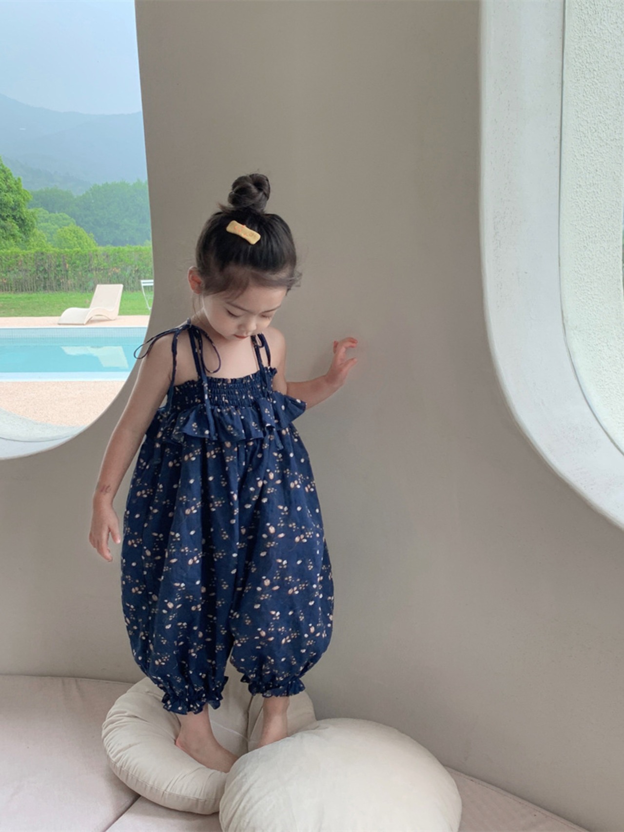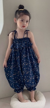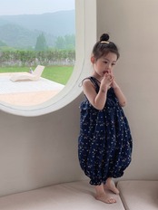 【子ども】花柄ノースリーブのコンビネゾン〈ネイビーブルー〉 80 90 100 110 120 130cm