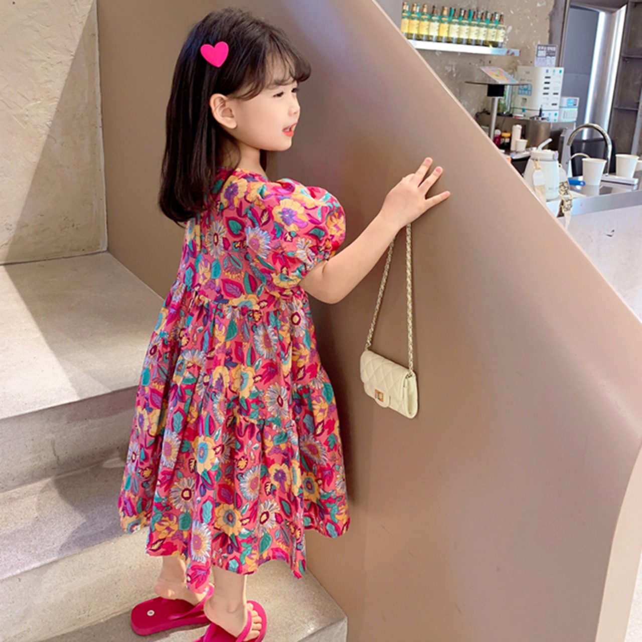 【子ども】バルーン袖ピンクの花柄ワンピース 80 90 100 110 120 130cm