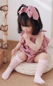 【べビー】とってもかわいい ヘアバンド付き フリル付きロンパース 赤ストライプ 66 73 80 90cm