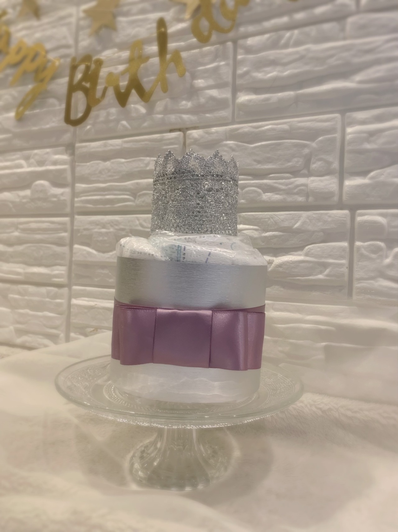 アレンジ可☆2段Ver.【welcomebaby】ハッピーおむつケーキ ベビーブルマ★ ゴールド シルバー ★ダイパーケーキ